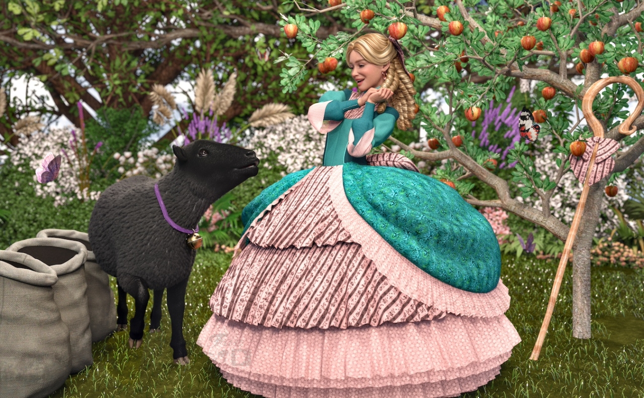 Edit: I forgot the bell around the sheep's neck, so I put that in, the ribbon was made with CES 3D's Tube Maker. Also I added some butterflies, they are the wings from the Moth Girl set.