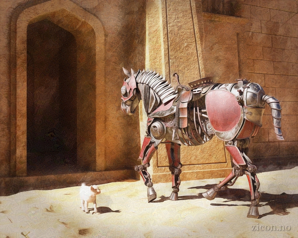 I don't know why someone would take a steampunk horse into the desert, and neither does Popcorn. Yet here we are.