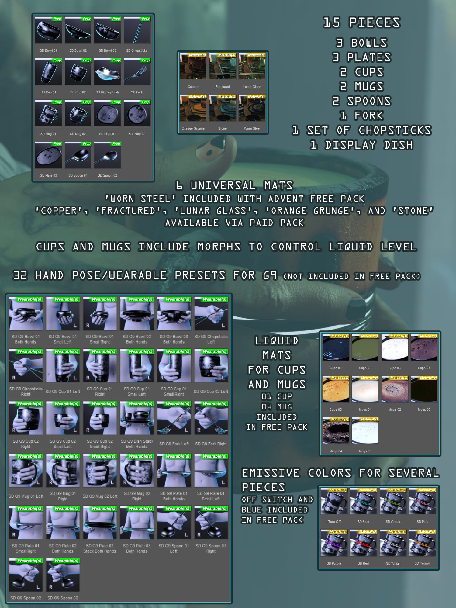 * Please note the Chopstick Hand Pose is very roughly placed, but should provide an easier base for arranging into a position suitable for a scene.