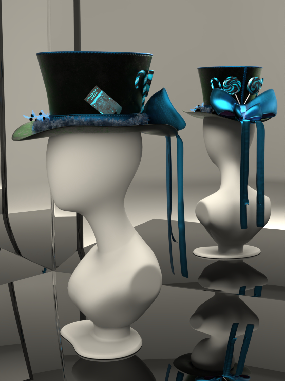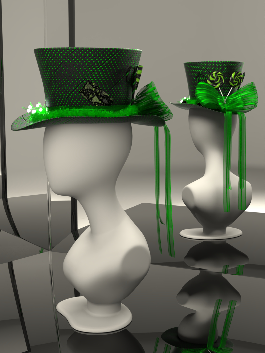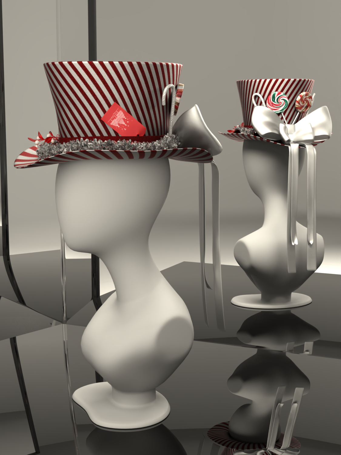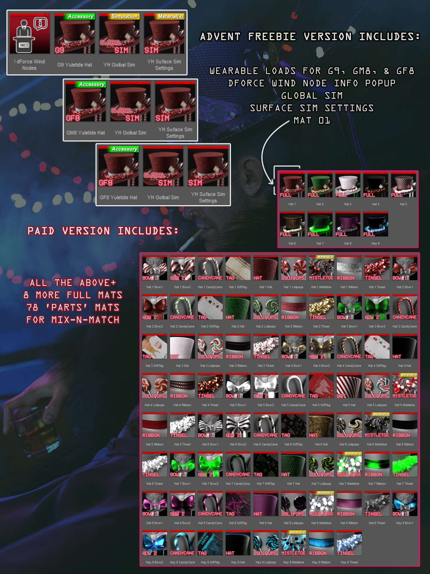 All versions include geometry switches to hide all or parts of the decor of the hat, but please note that the tinsel is fulfilling a very important Support Role and things will not look correct if it is hidden. It is strongly suggested that you leave the Tinsel visible unless hiding all elements apart from the bows.