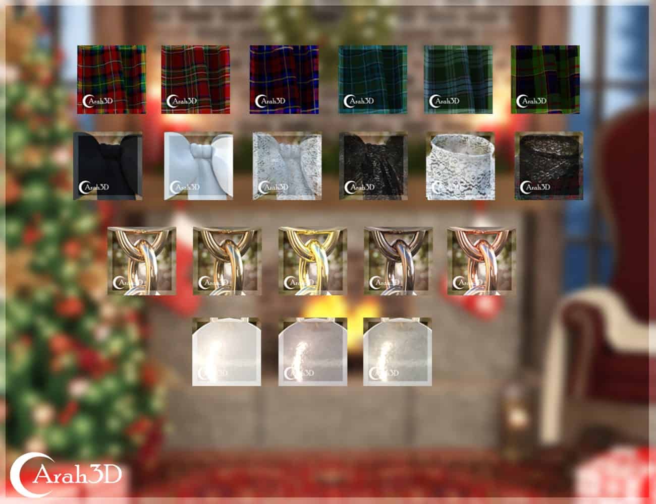 A multitude of high-quality Iray materials are included in the package, for all items.