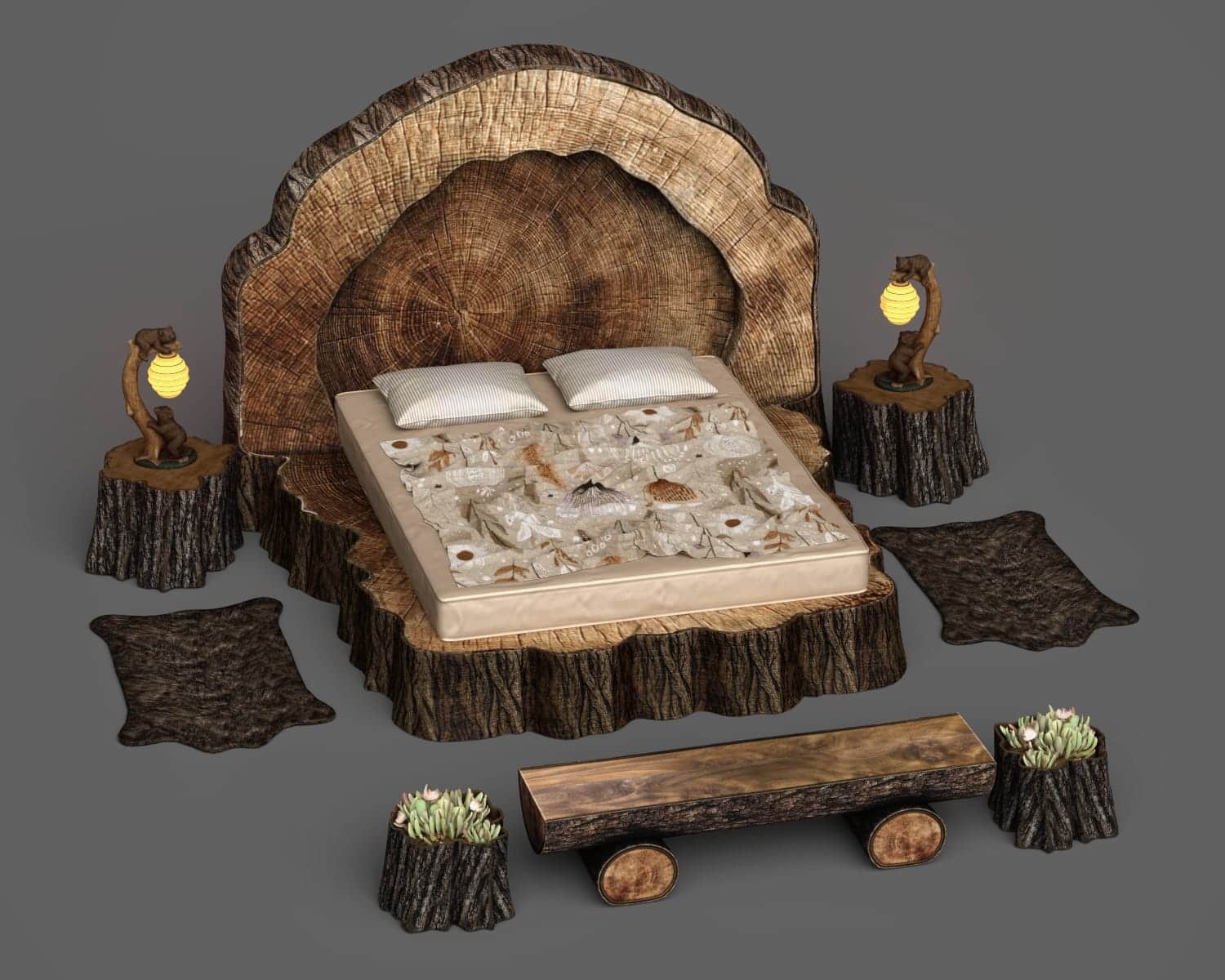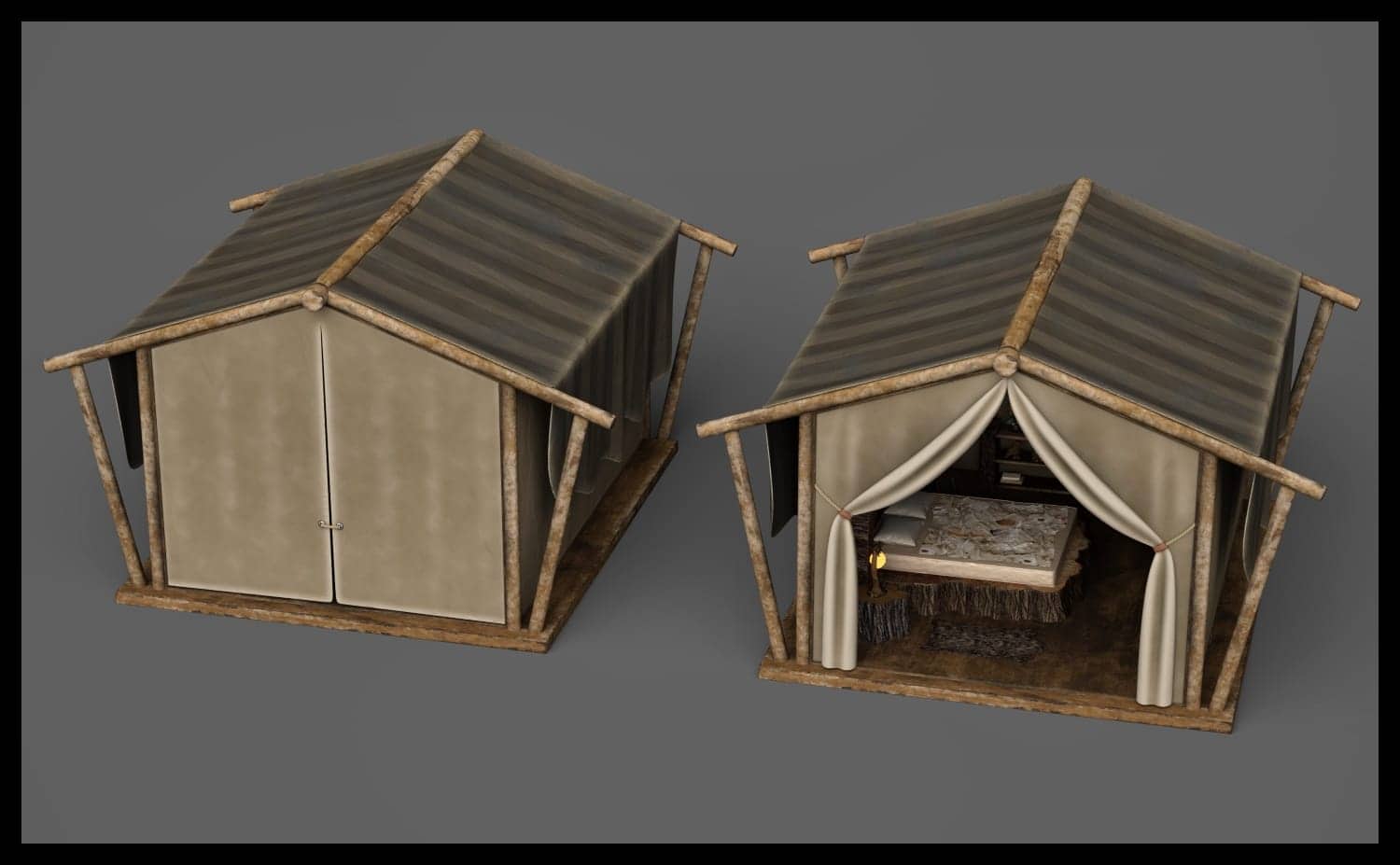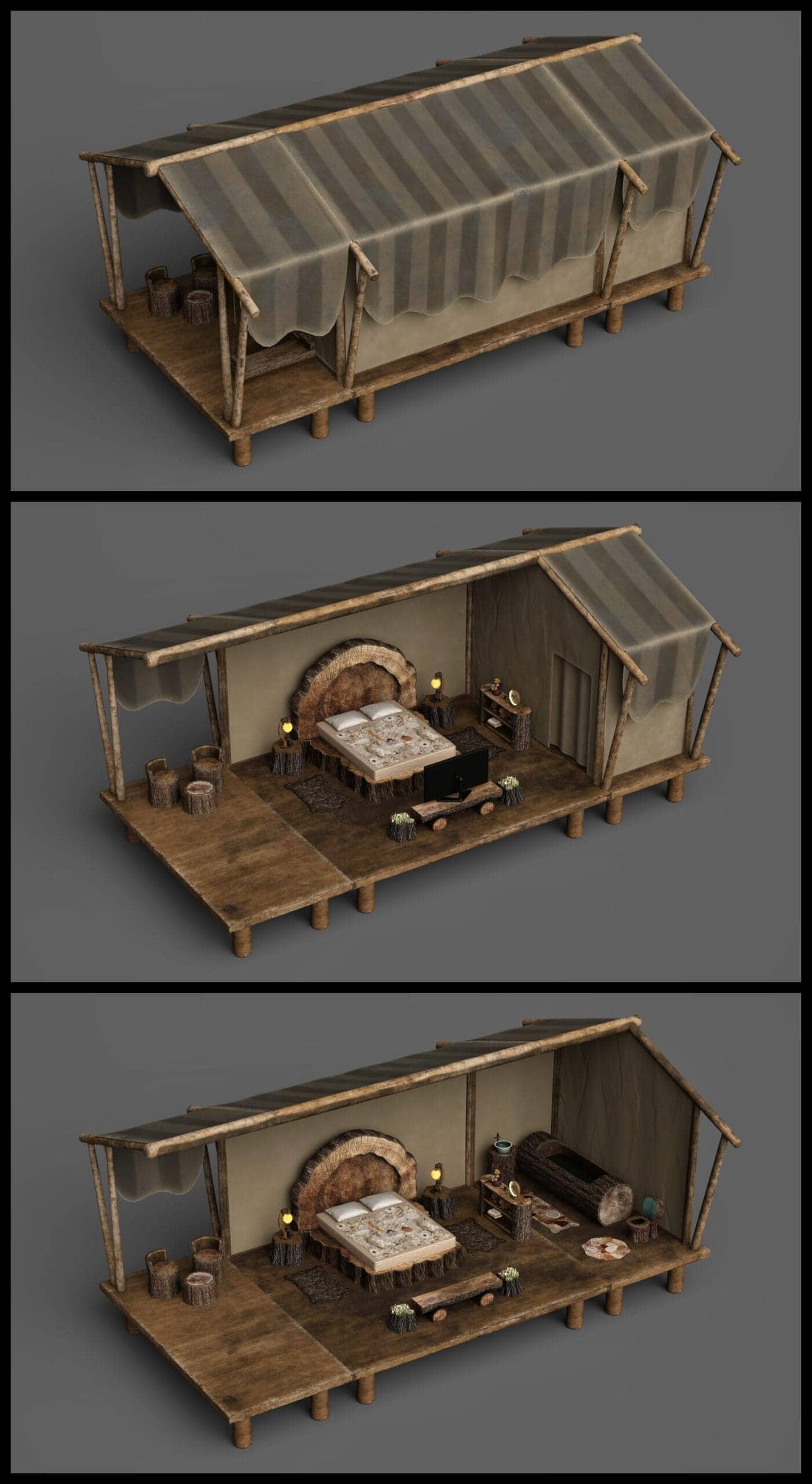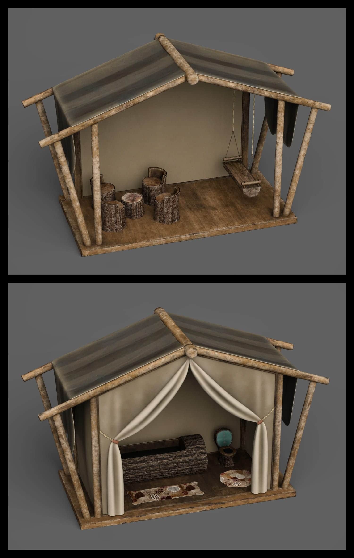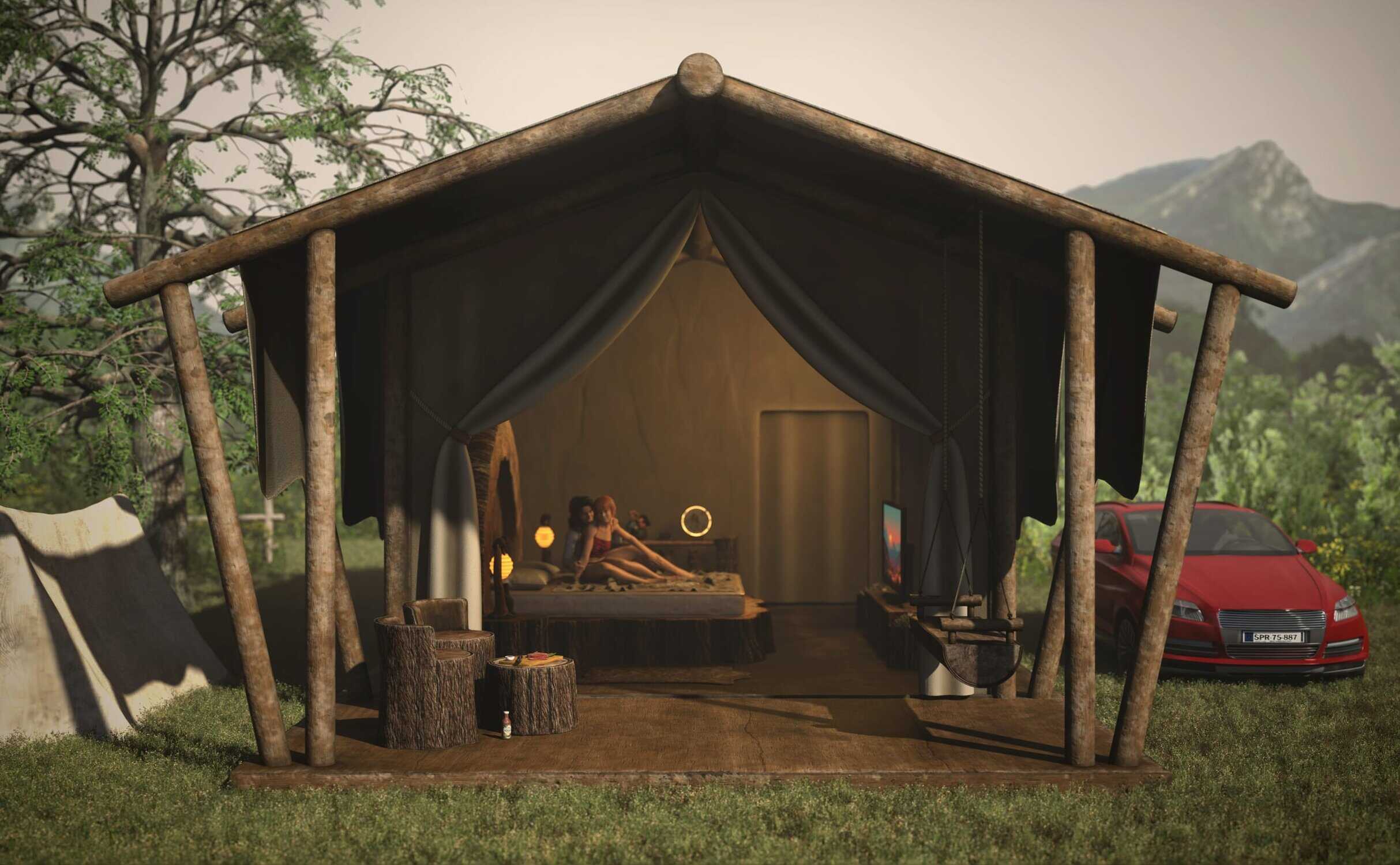 Enjoy a luxurious glamping experience with modular props and furniture sets for your characters.