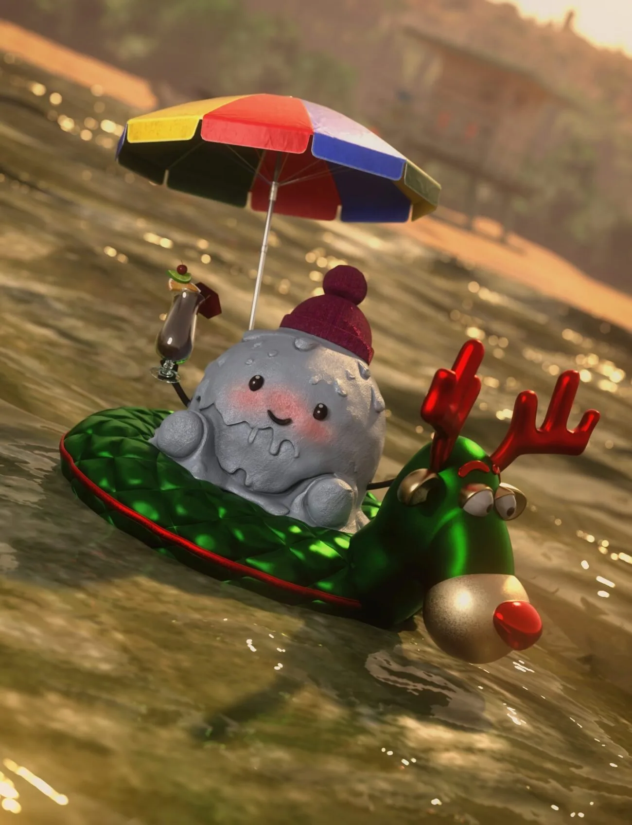 This delightful and unique “Melting Snowman” character set introduces a captivating, heartwarming element to your winter and holiday Daz3D renders. The core concept – an endearing snowman slowly melting – merges classic winter aesthetics with a cute, modern, “kawaii” sensibility.