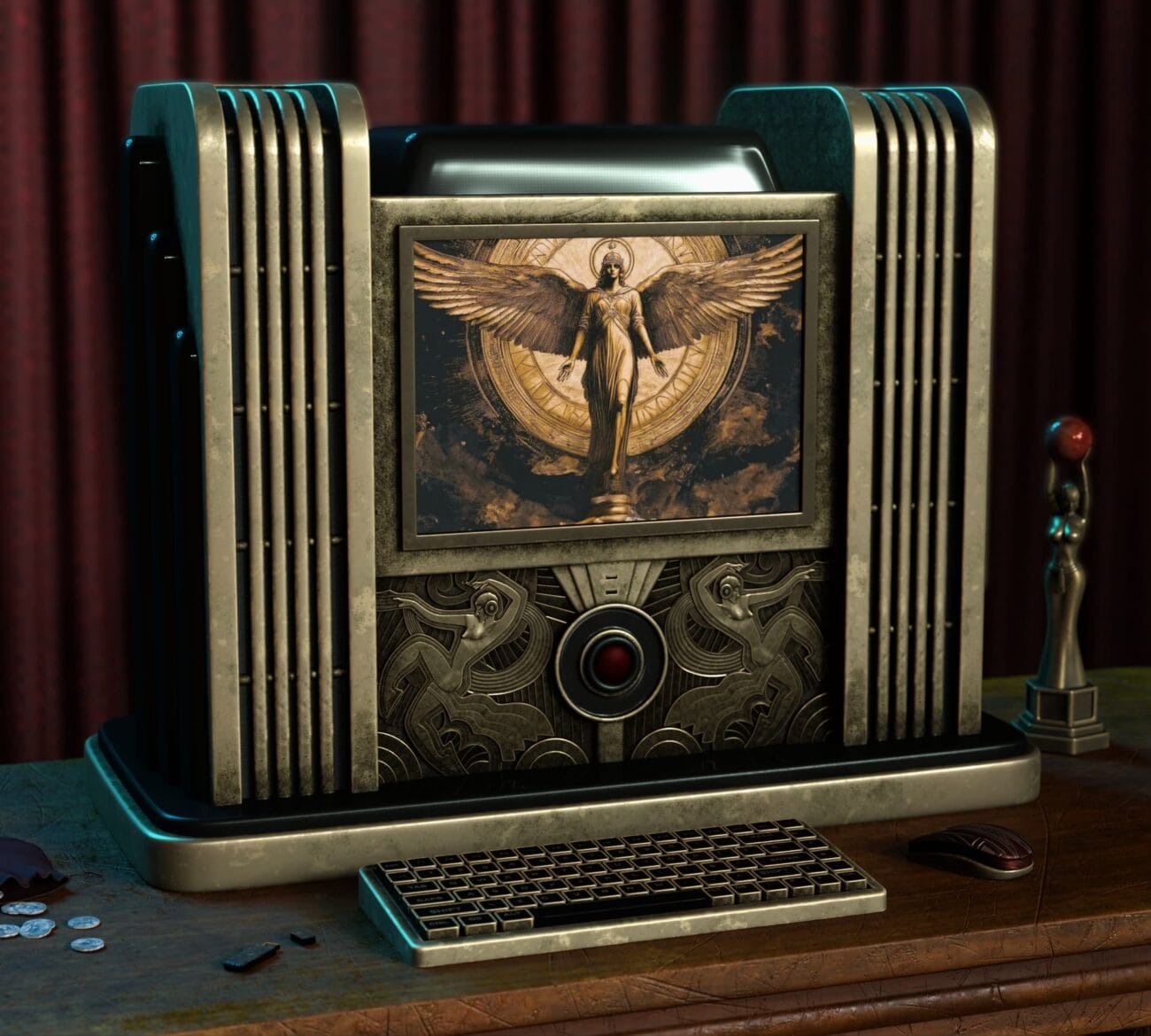 Art Deco PC, with keyboard, mouse, mousepad, and USB stick.