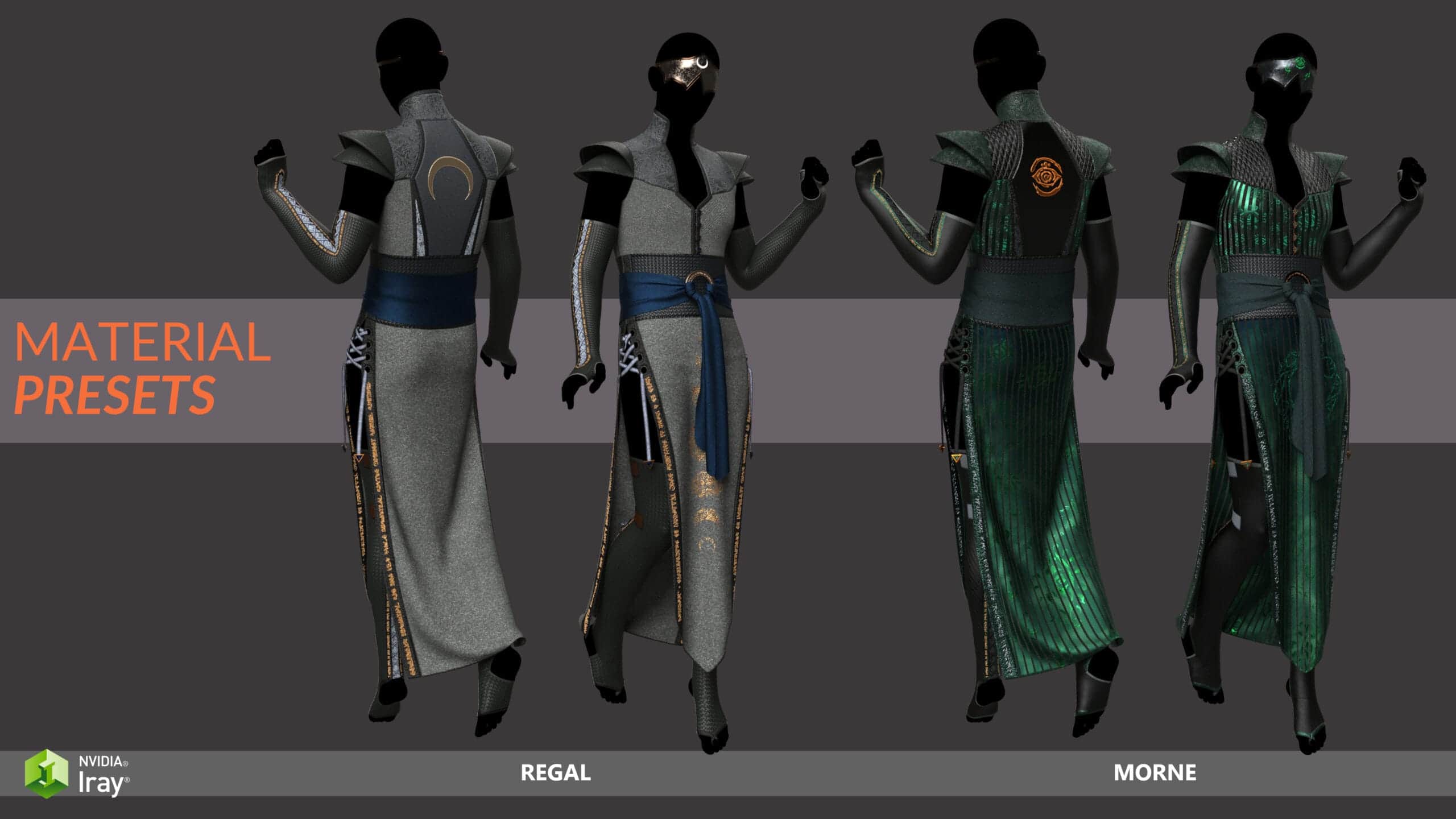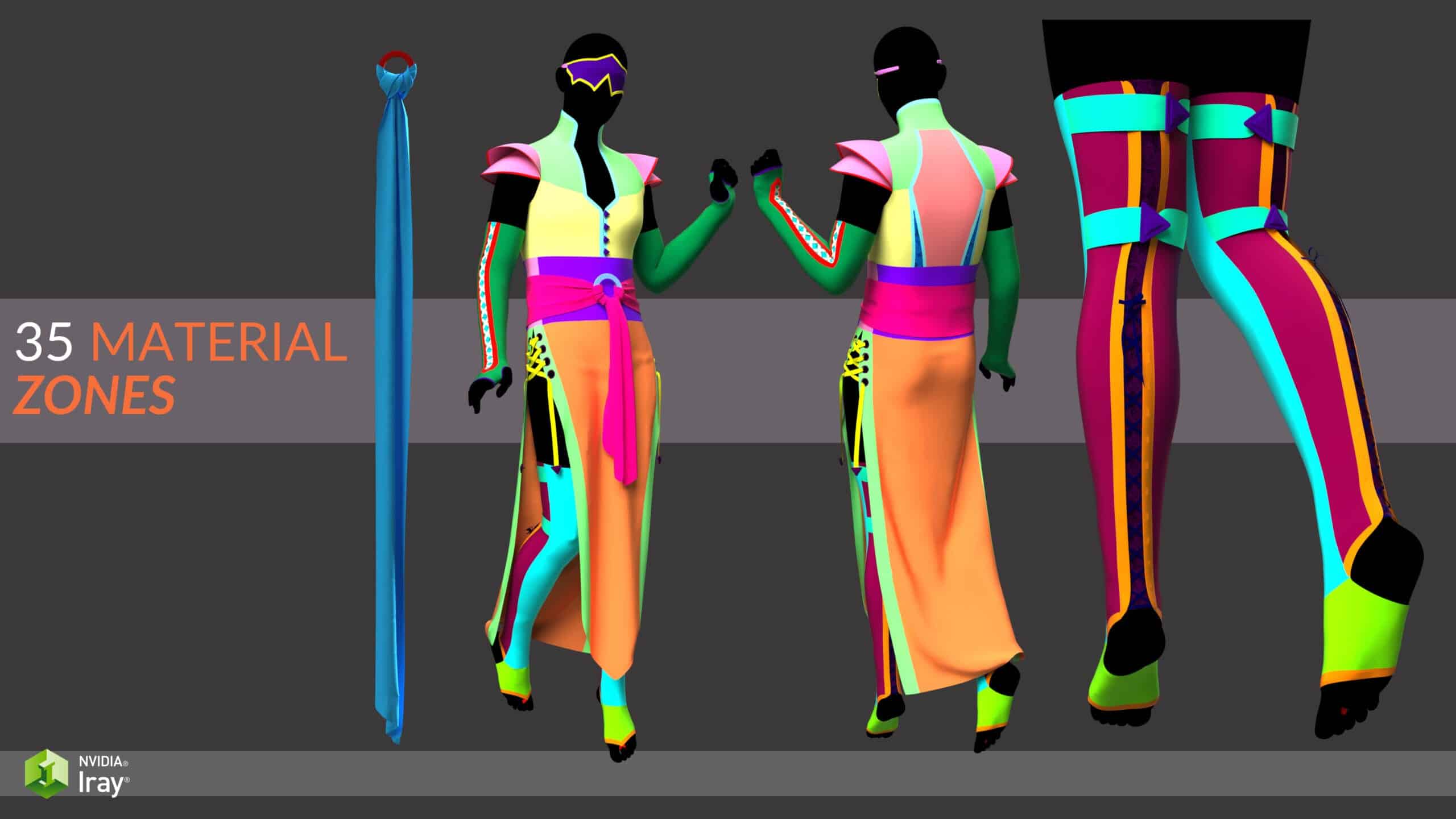 *H.material presets for individual pieces (Blouse, skirt, Veil)