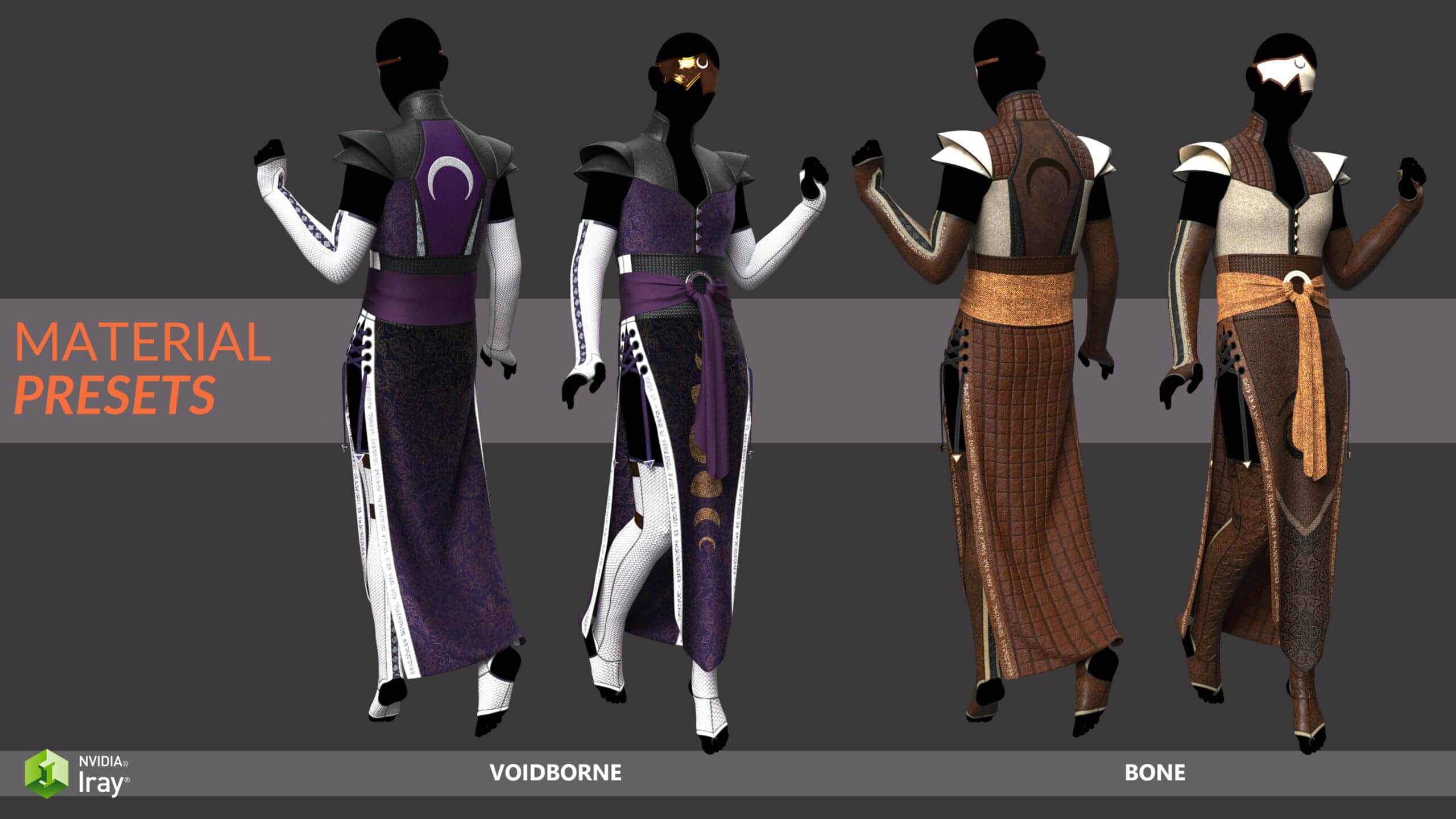 A highly adjustable outfit occult themed outfit that comes with its own rigged and pose-able Wisp. This Set comes with 6 full material sets that can me mixed and matched, as well as multiple emissive styles, micro-pressure options, and preset poses. Be sure to use the parameters tab to get full use of all the options!