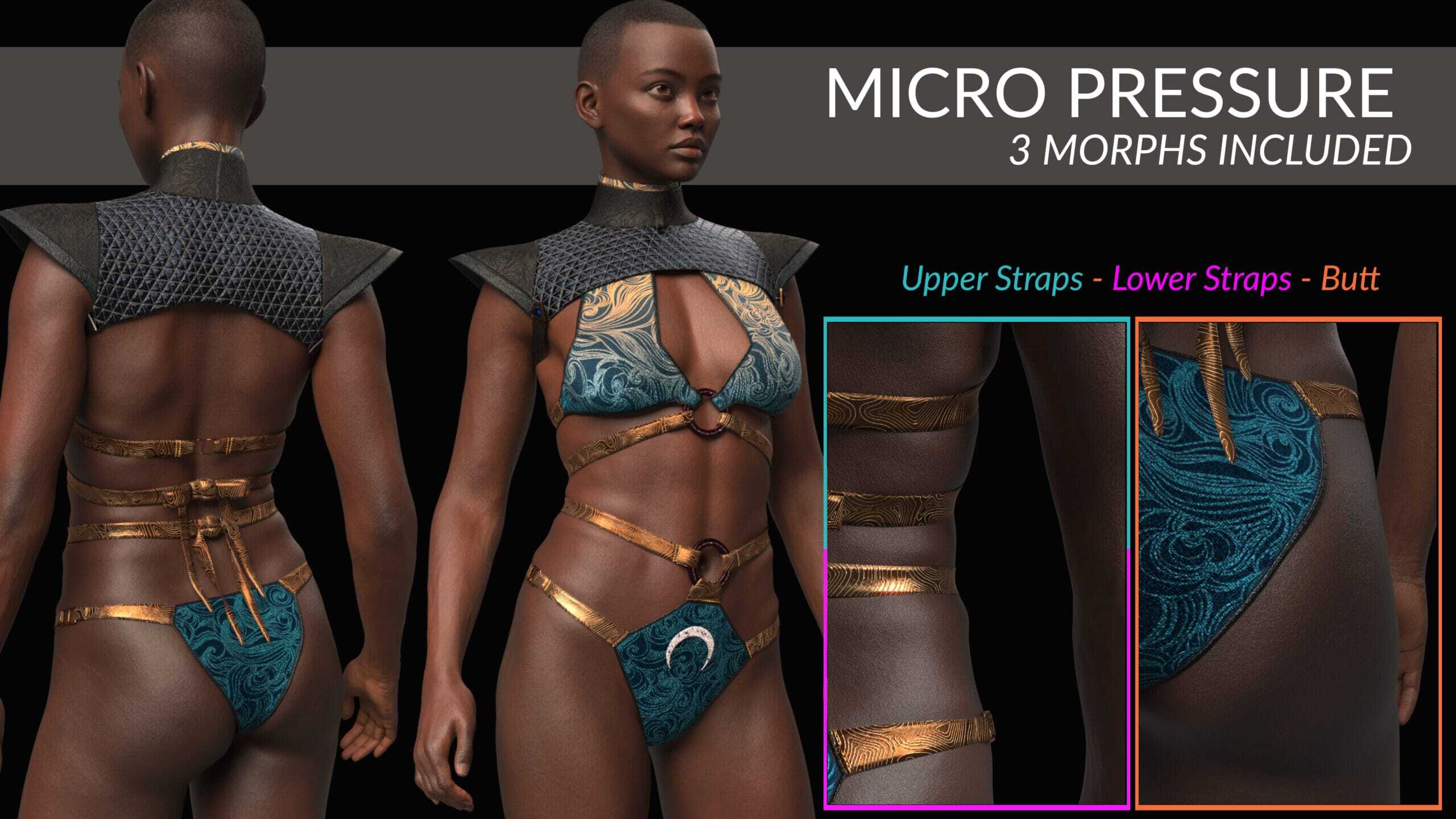 - The Cuirass has left and right unclasping morphs for the armpit straps