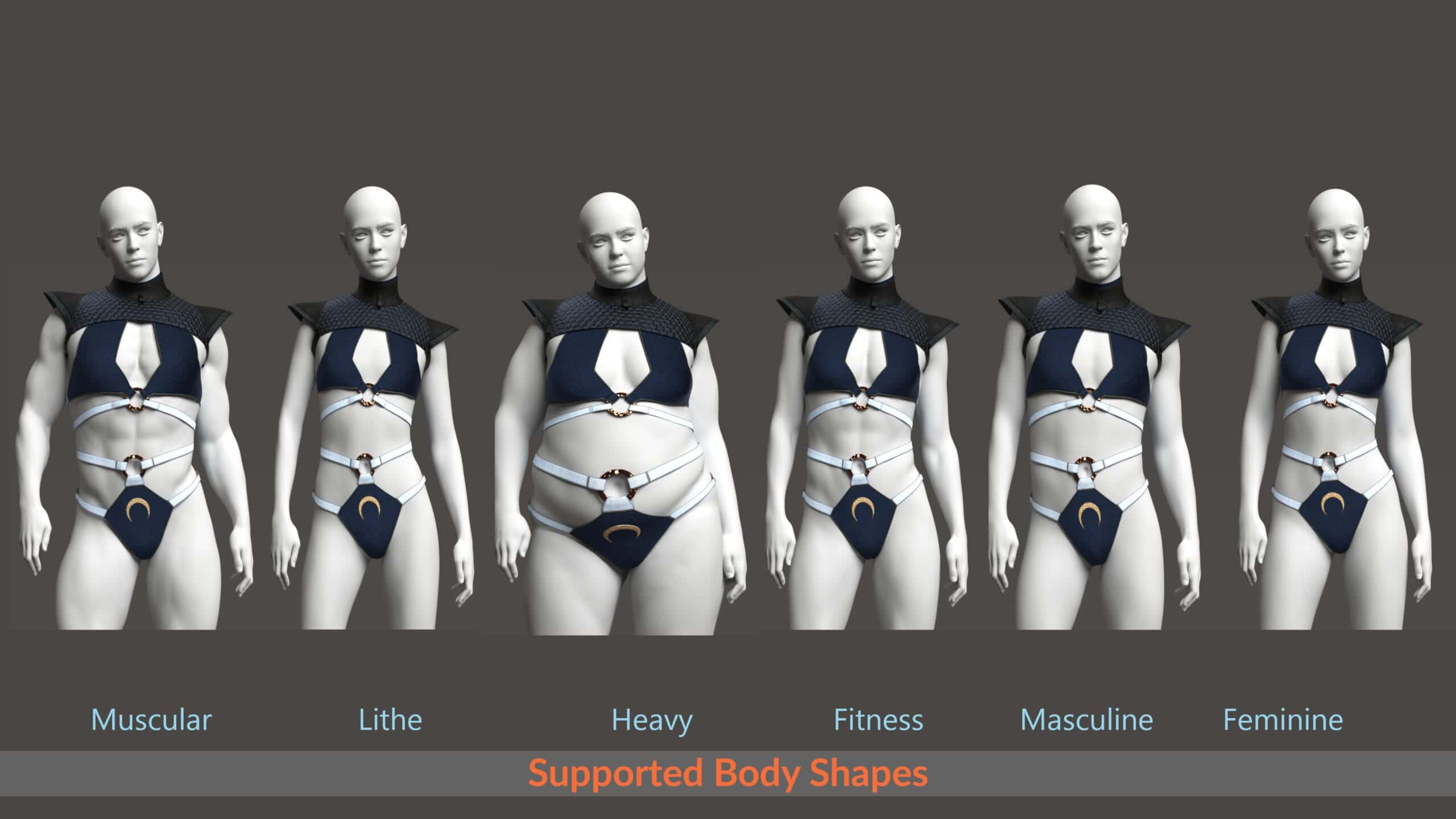 This outfit set has 2 Lingerie wearable presets: the Covenant Lingerie and the Covenant Lingerie (dForce Undress). Both lingerie pieces have dforce applied but the first, Covenant Lingerie, only has dforce applied to the back straps. The second, Covenant Lingerie (dForce Undress), is meant to work in tandem with the undress morphs provided in the parameters by removing the back clasp and extending dForce to the entirety of the top part of the lingerie.