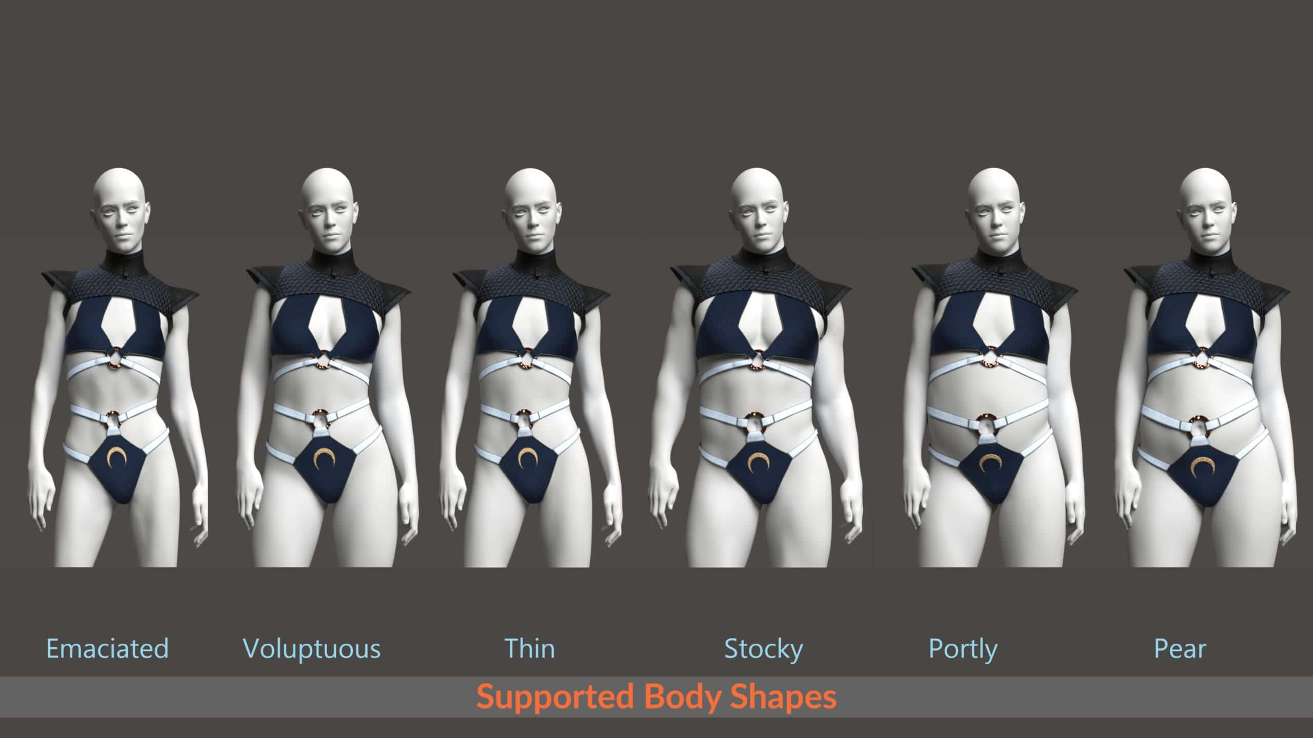 - The Lingerie has adjustment morphs for each metal ring to help with any clipping