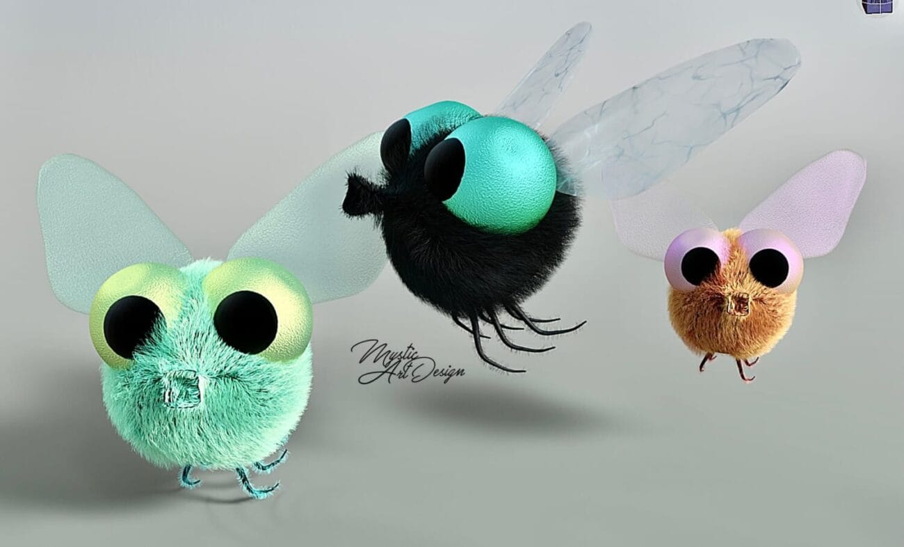 Welcome to the whimsical world of **Mysticartdesign**! This **cute toon fly** with its **large, shiny eyes and soft fur** is perfect for funny and creative scenes. Thanks to its **movable morphs**, you can animate it however you like – whether fluttering, rolling or … *fluttering*!