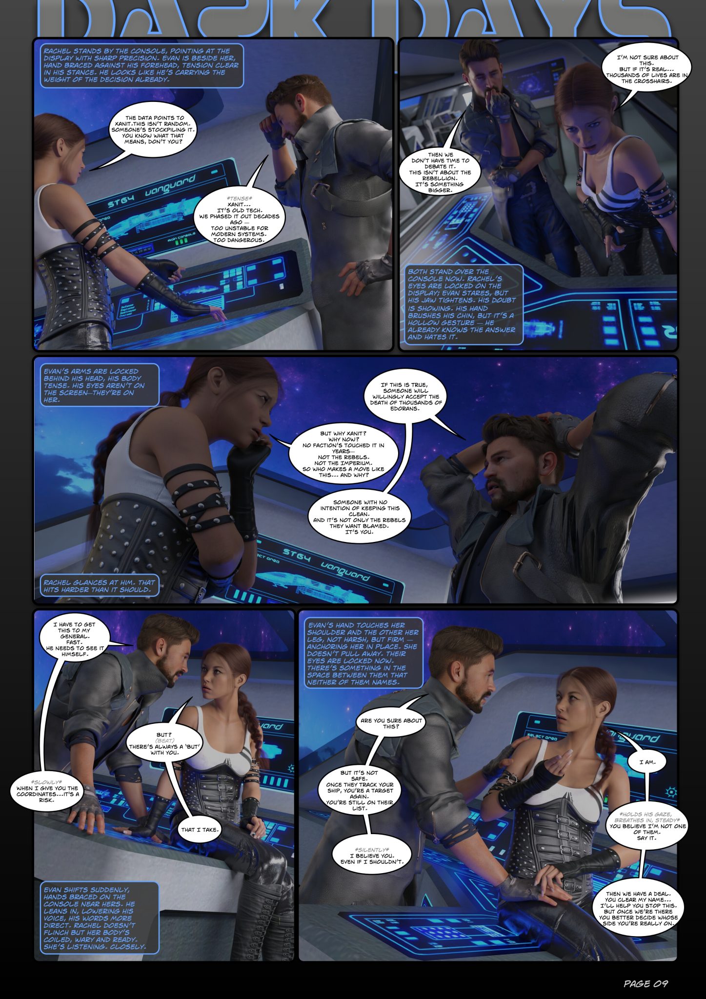 Dark Days is an adult comic and contains bloody battle scenes as well as explicit scenes for ages 18 and up.