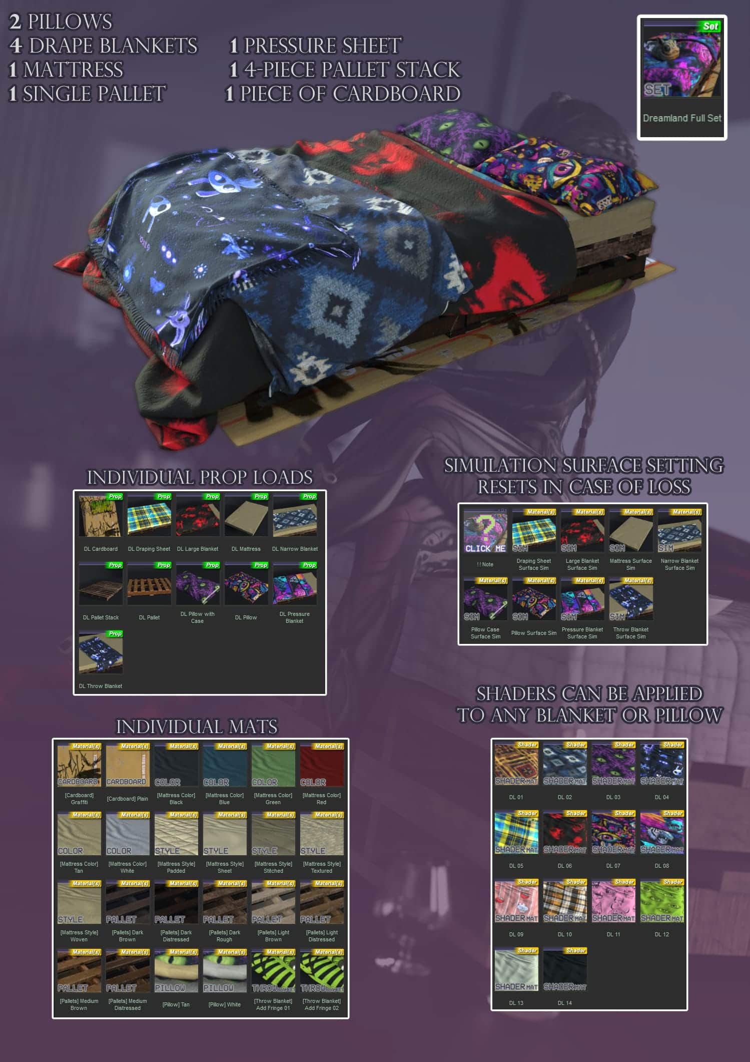 Simulation Surface Setting Mats for all blankets, pillows, and mattress in case a reset is needed