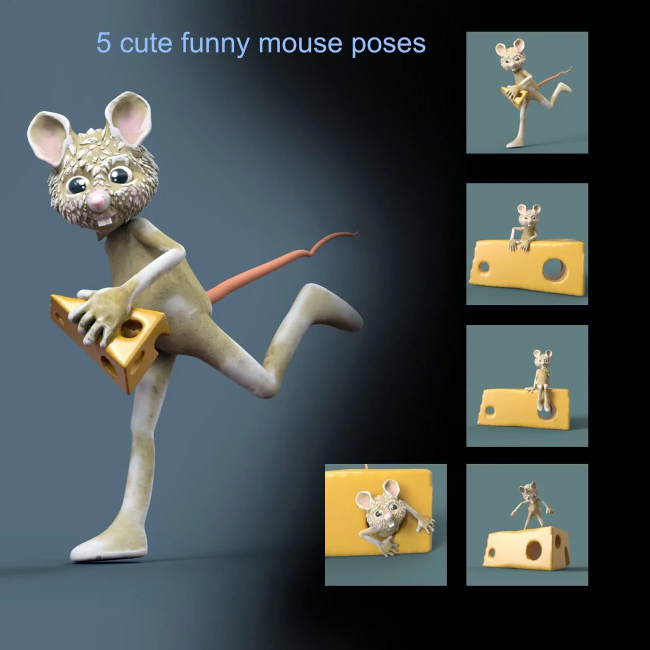 Mogli Mouse With Cheese: 5 Cute 3D Printable Poses