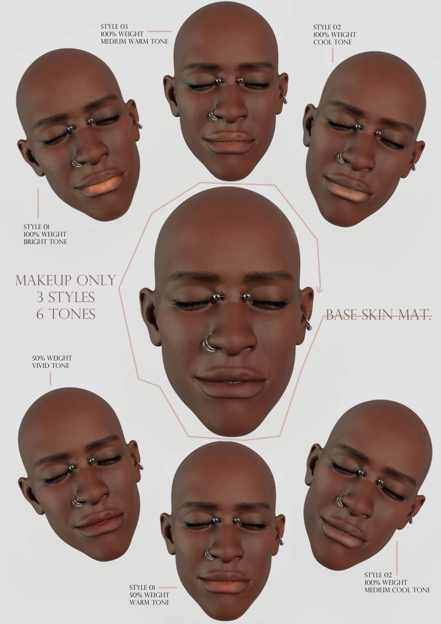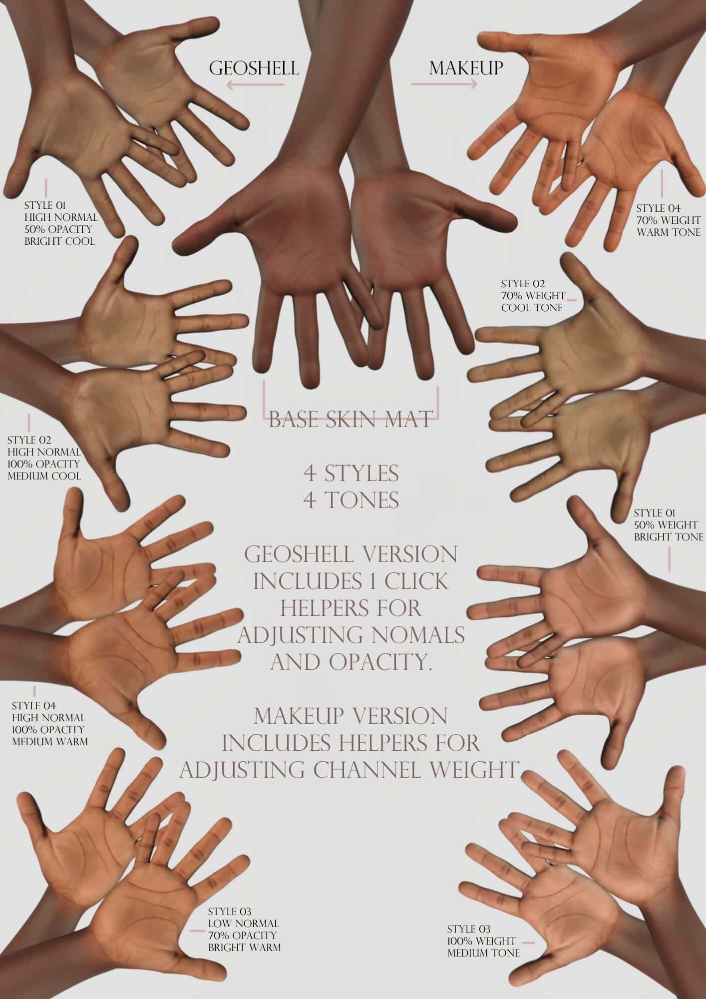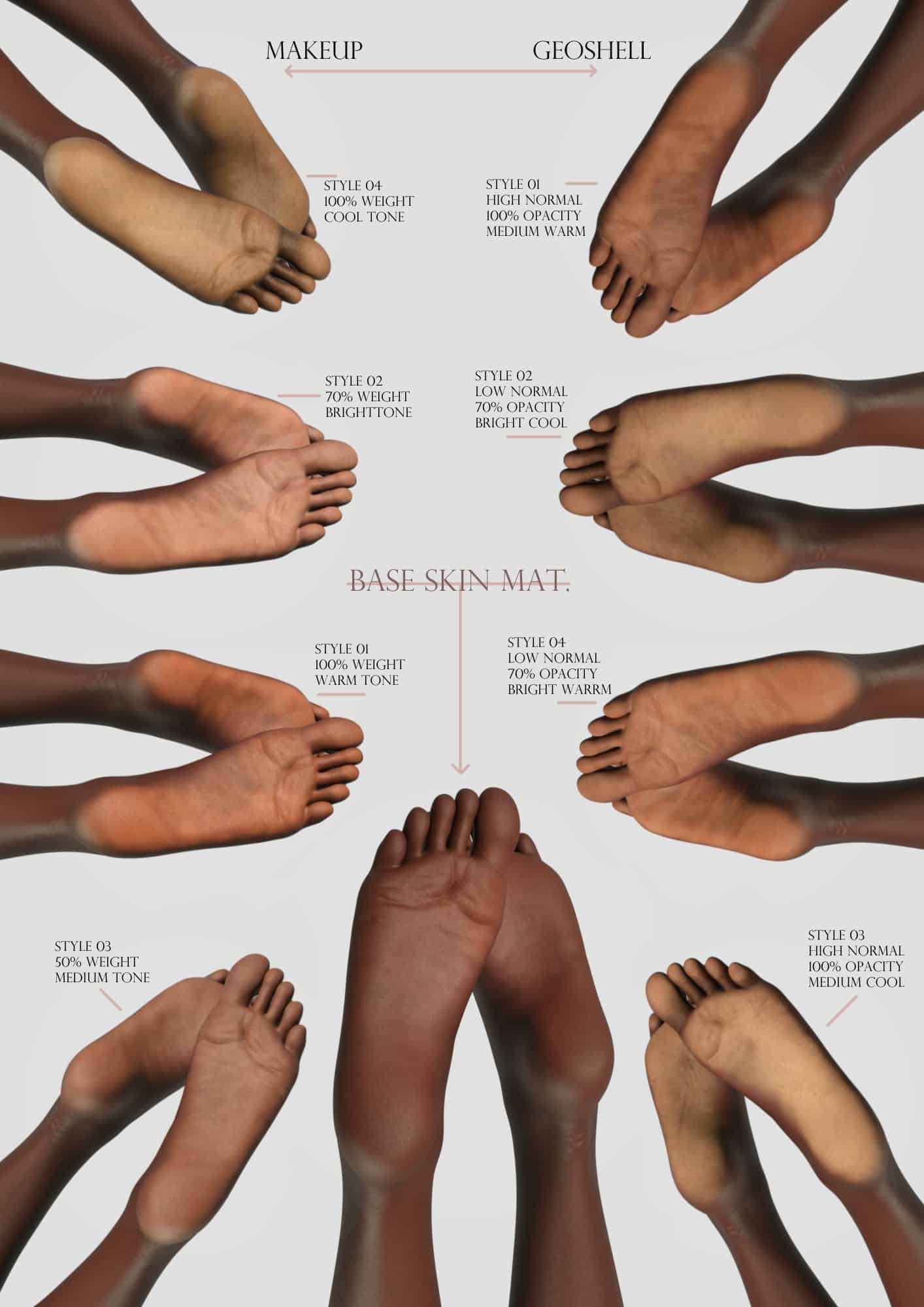 G9 Palm & Sole details are a set of Geoshell and Makeup Channel maps that pull from two of the base G9 skins to help bring substance back to…well, the palms and soles. Bonus, there are 3 lip styles because why not.