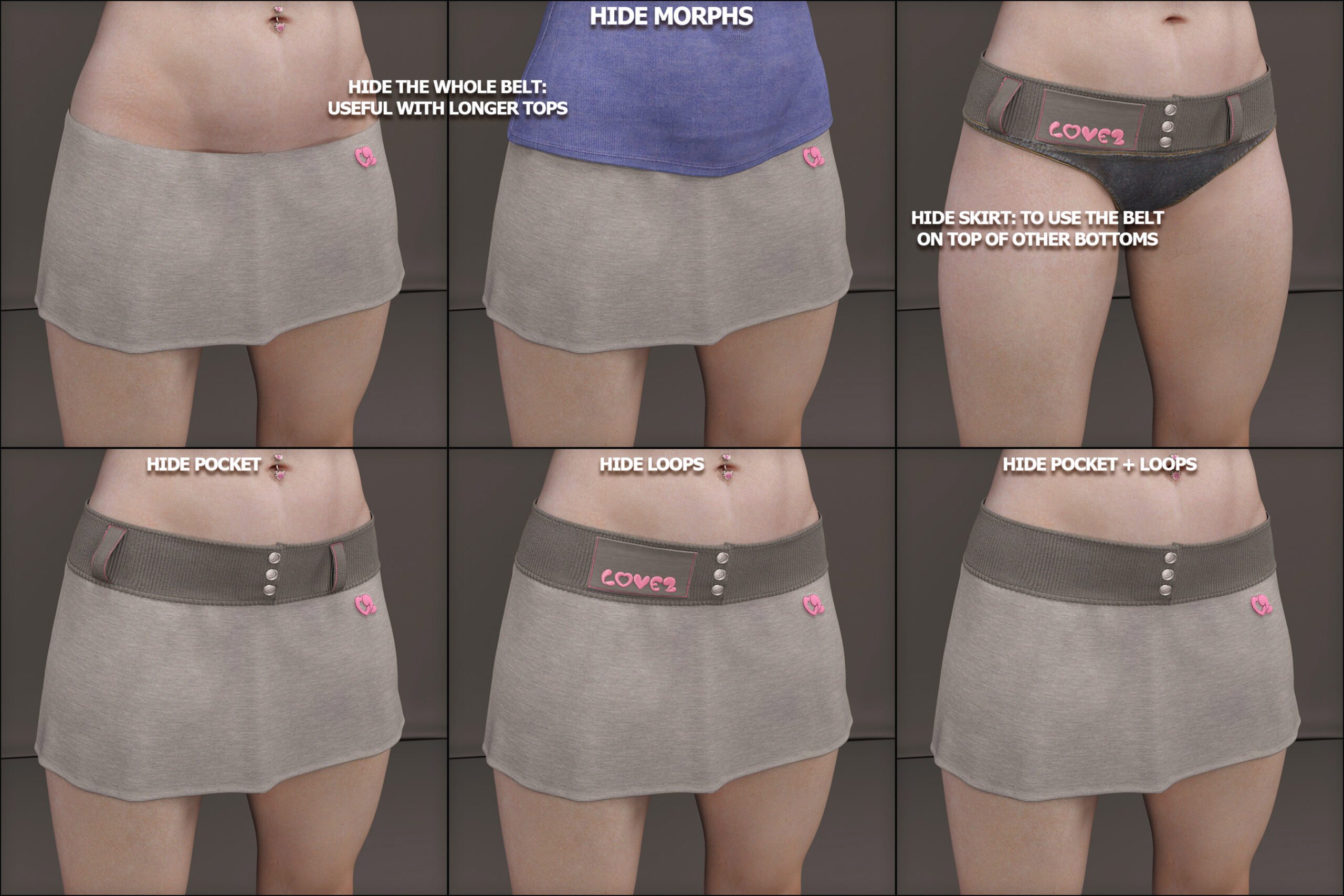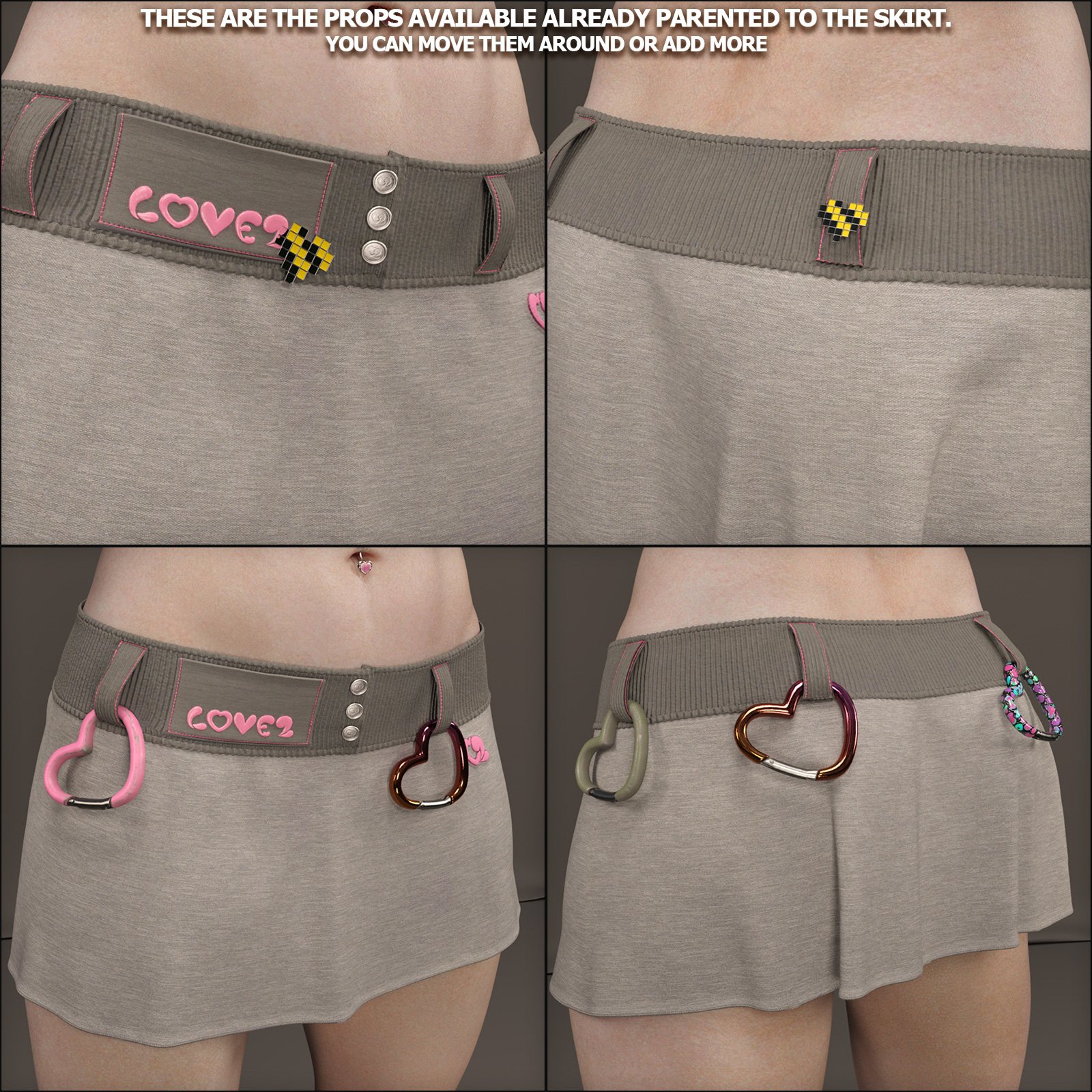 The loops feature weight morphs for hanging items, ensuring they look realistic and properly supported. The skirt is optimized to always look great when using dForce.