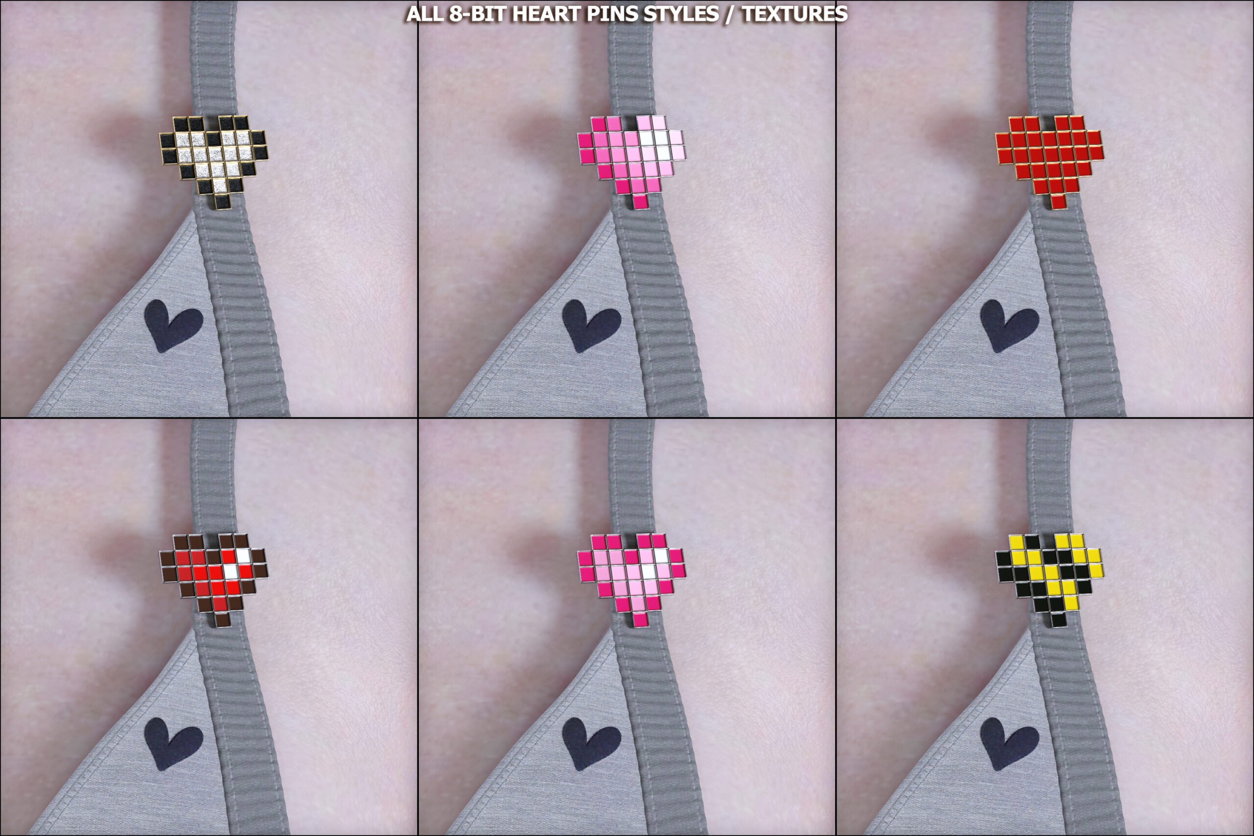 It also features cute props for the Bra and Skirt, such as heart-shaped Carabiners, a simple Keyring, and 8-bit pixel heart-shaped enamel Pins.