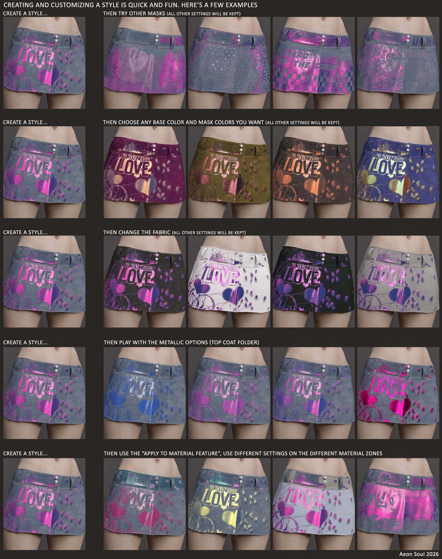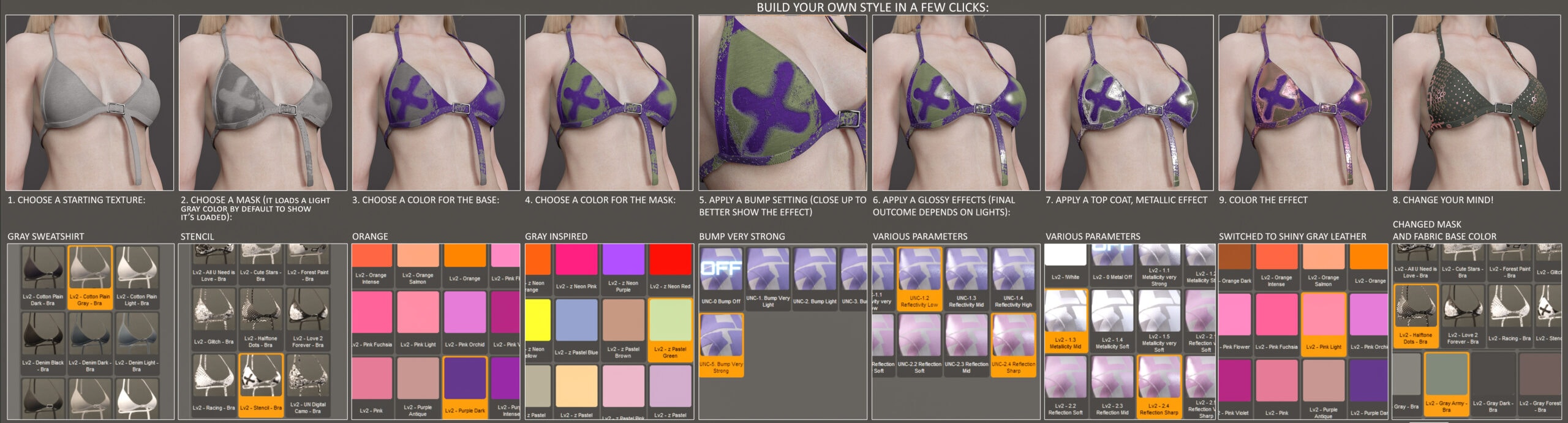 Customize is our signature line of texture style kits. It combines realistic fabrics, bold designs, adjustable material parameters, and a refined construction structure that allows you to create striking, eye-catching styles in just a few clicks.