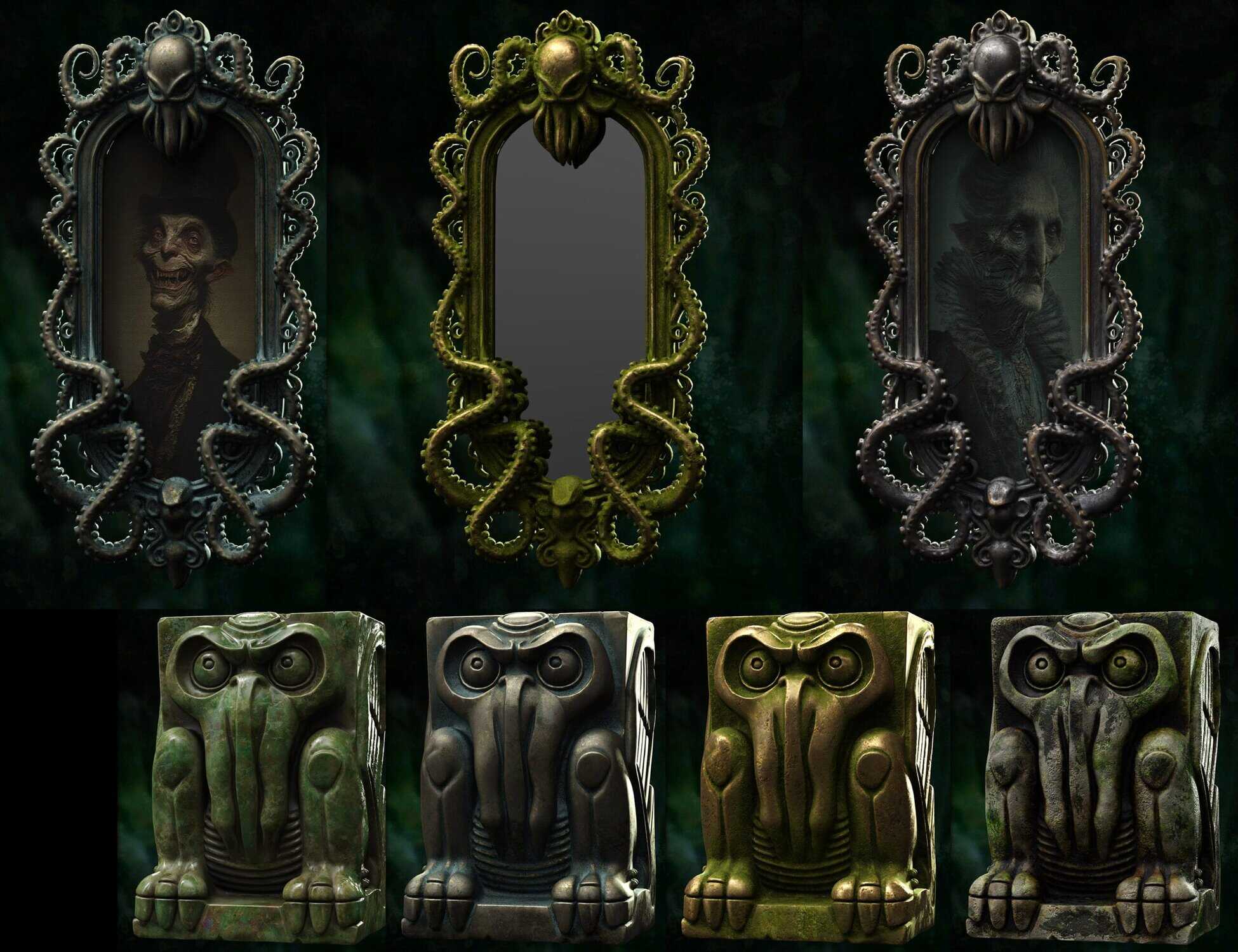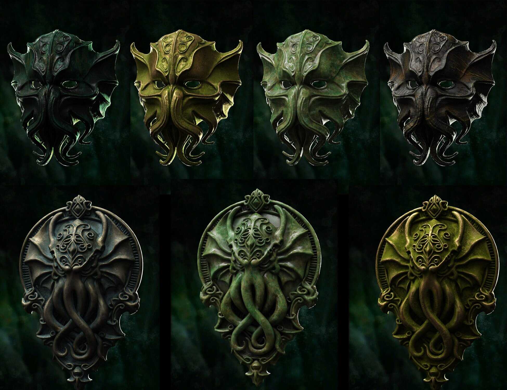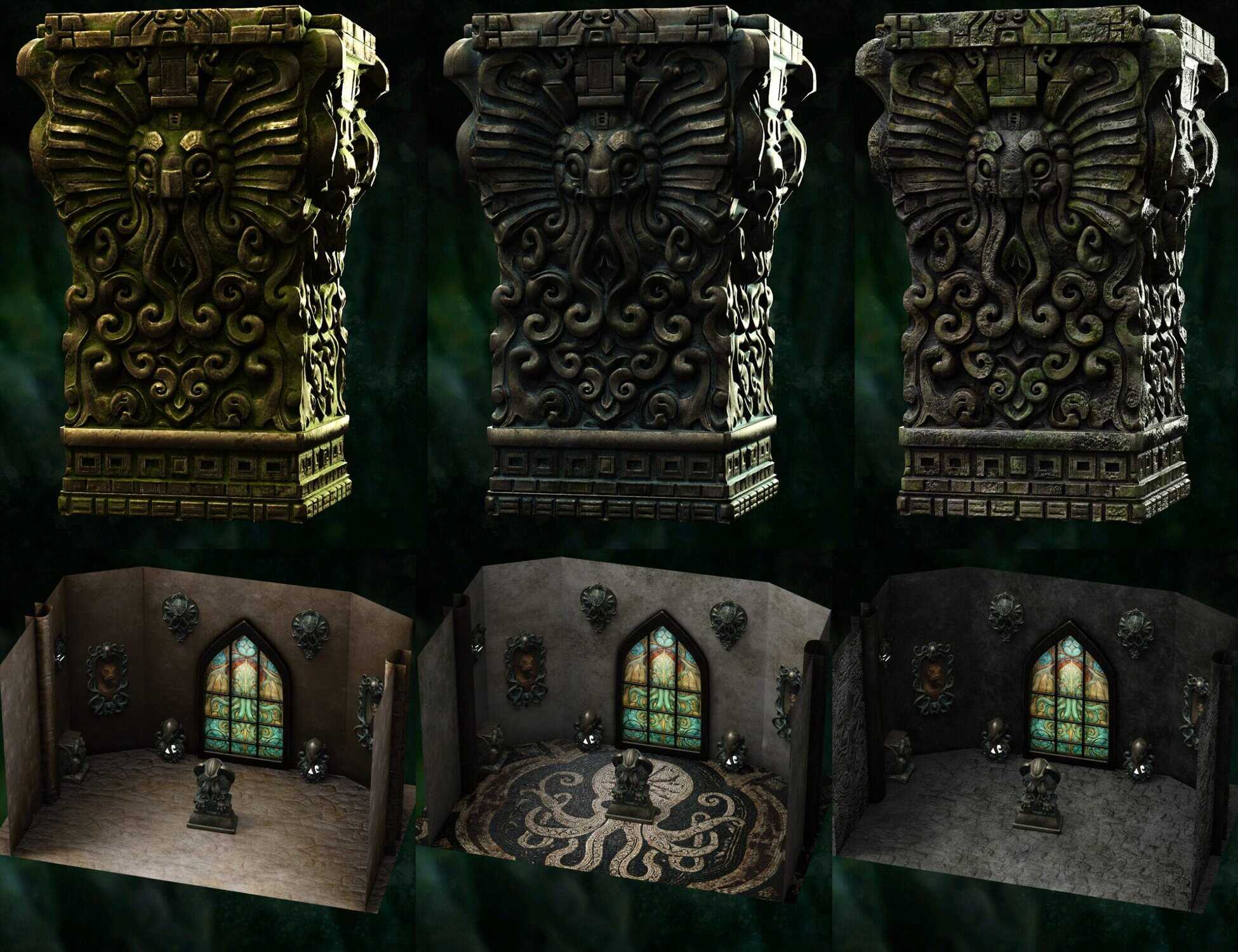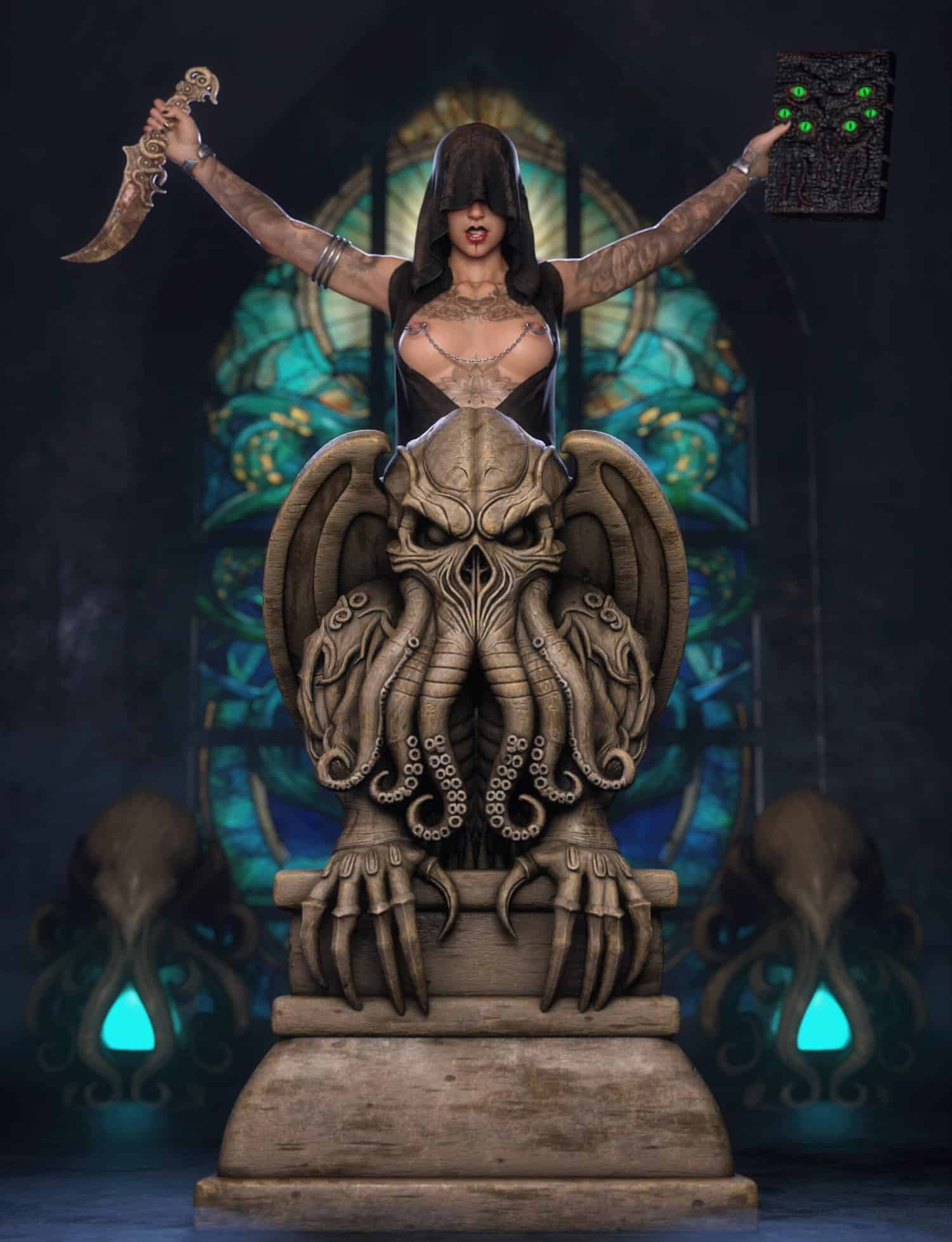 - Ancient Artifacts & Statuary: You get highly detailed 3D models of Cthulhu-like statues , including a grotesque Dagon Monolith, and a terrifying Mythos Mask ).