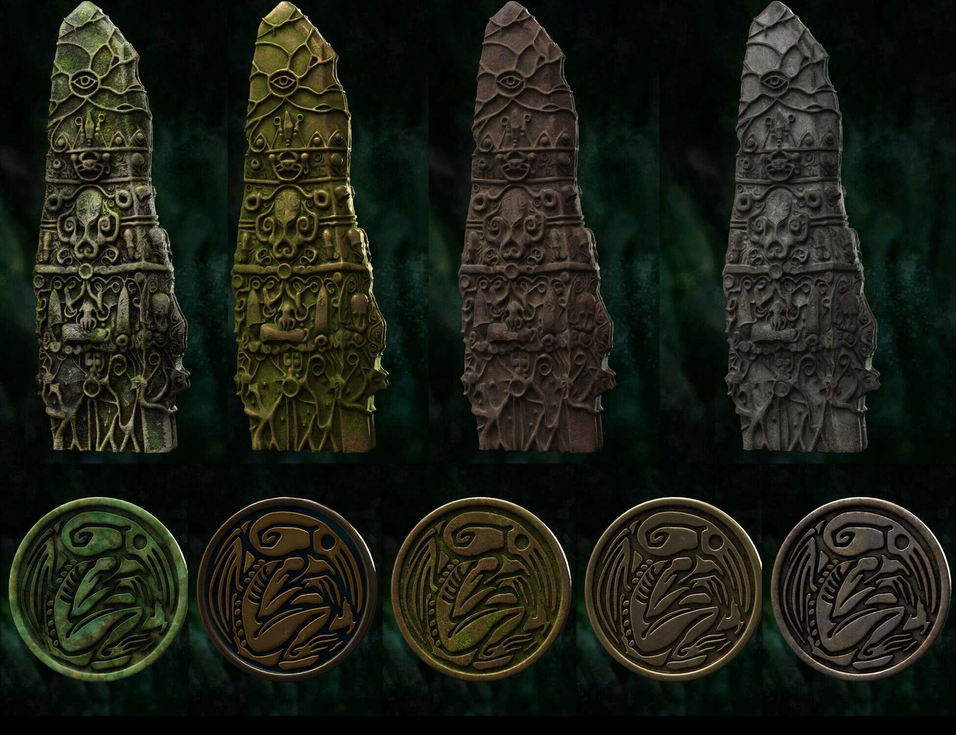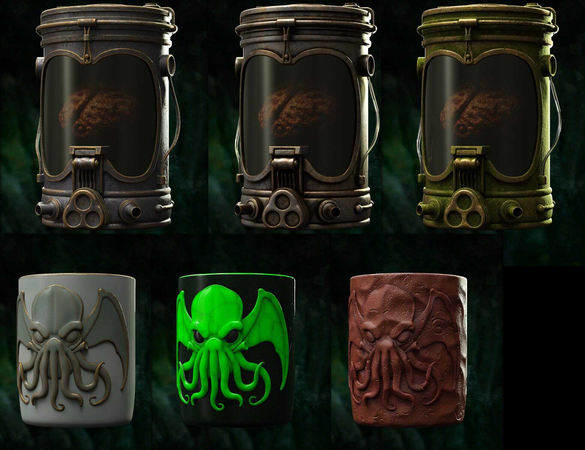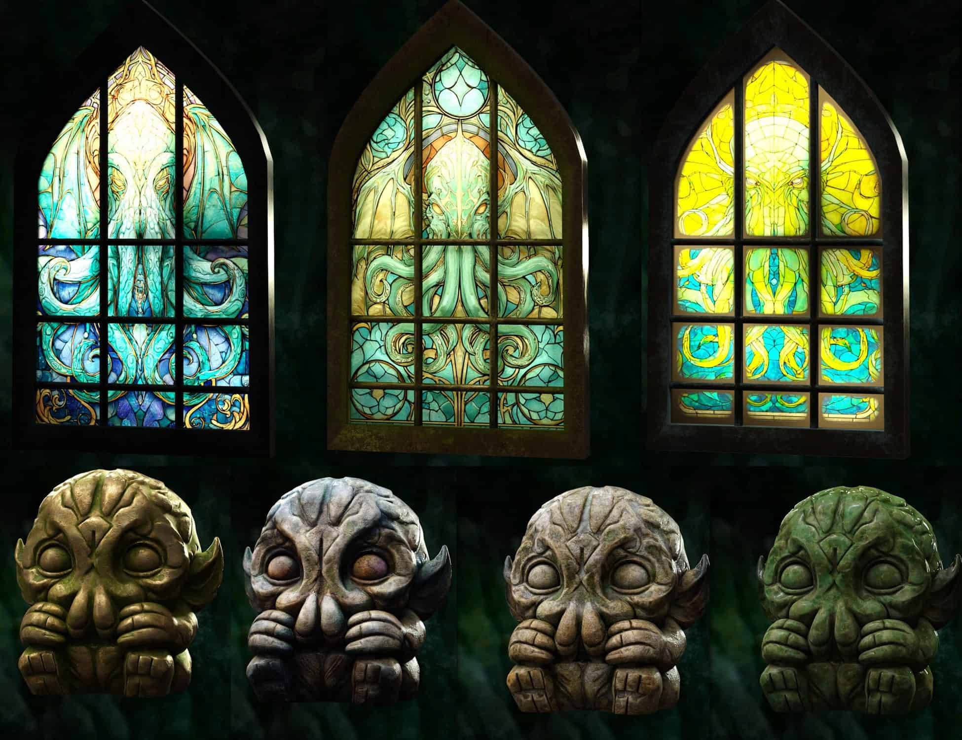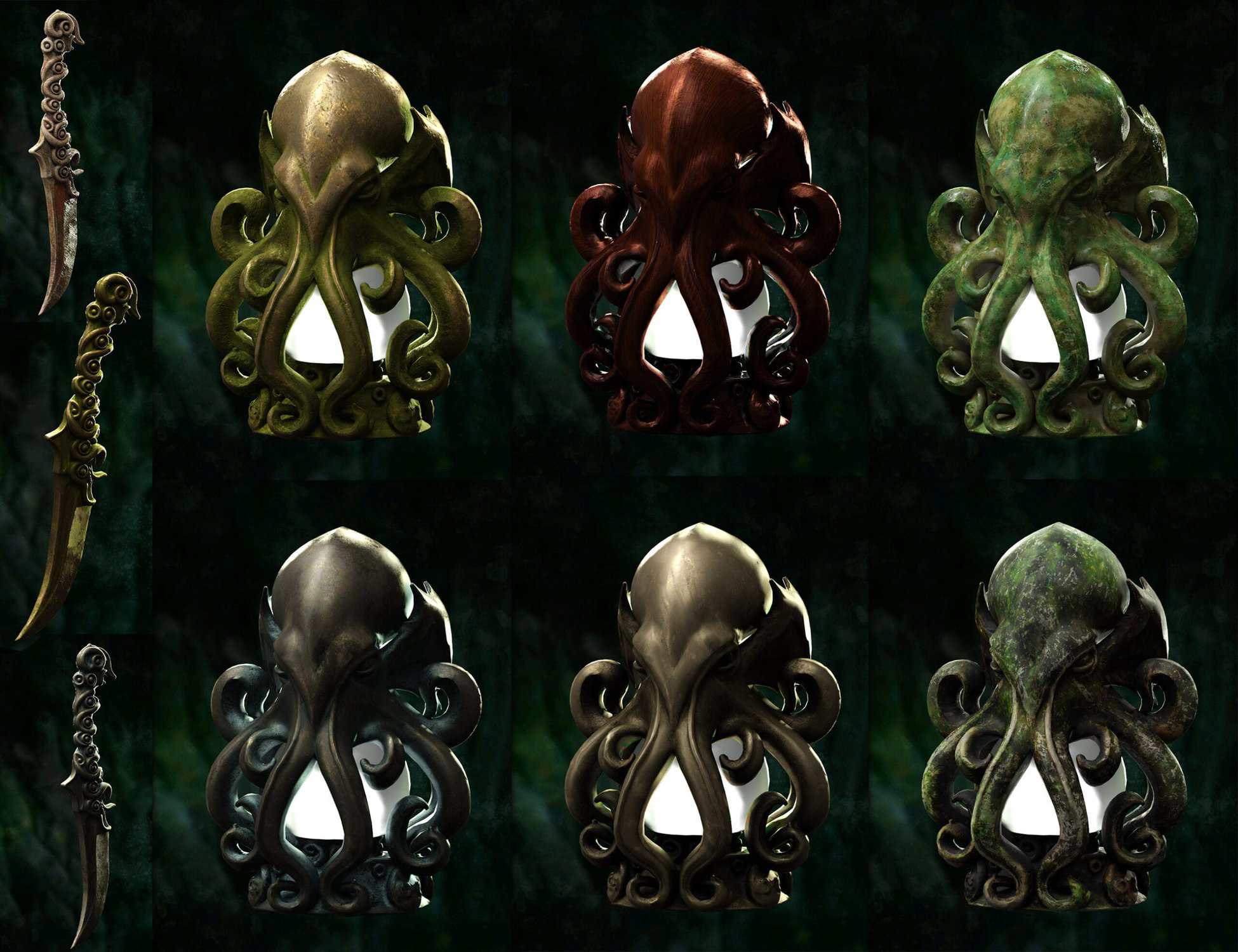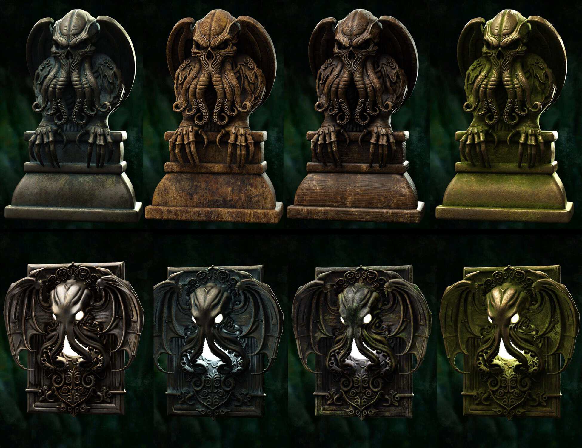 - Ancient Artifacts & Statuary: You get highly detailed 3D models of Cthulhu-like statues , including a grotesque Dagon Monolith, and a terrifying Mythos Mask ).