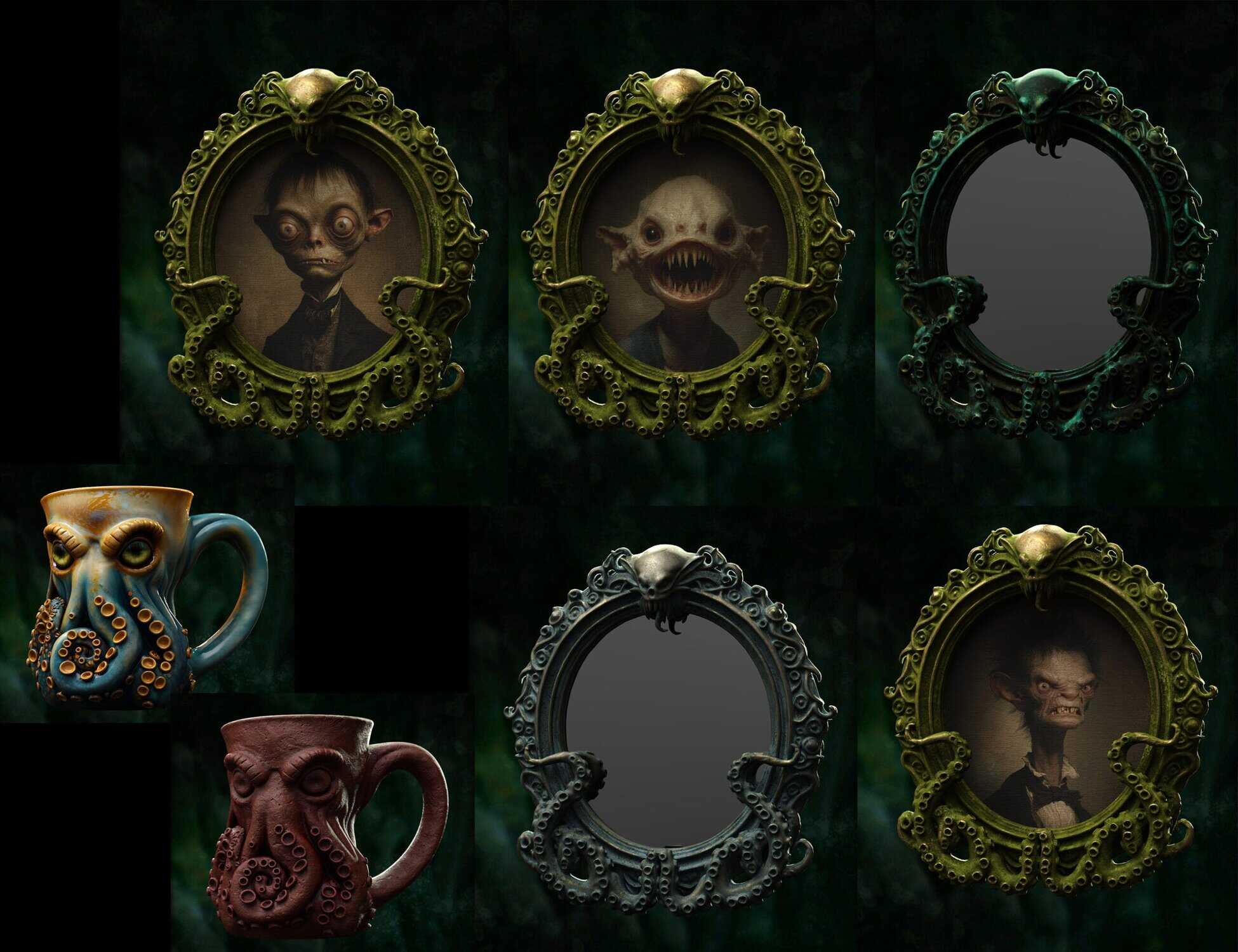 - Framed Art & Mirrors: Display portraits of unnerving characters like Uncle Bob or Agatha in ornate, tentacle-themed Long and Round Frames, plus a matching Mirror.