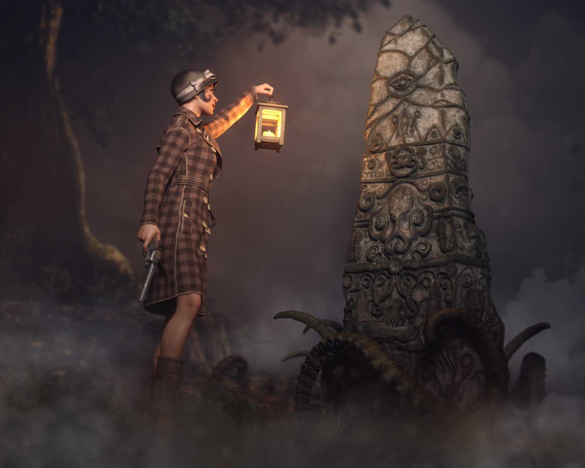This collection is perfect for creating scenes inspired by cosmic horror, ancient cults, or the wonderful world of H.P. Lovecraft! What sort of dark, moody scene are you planning to create first?