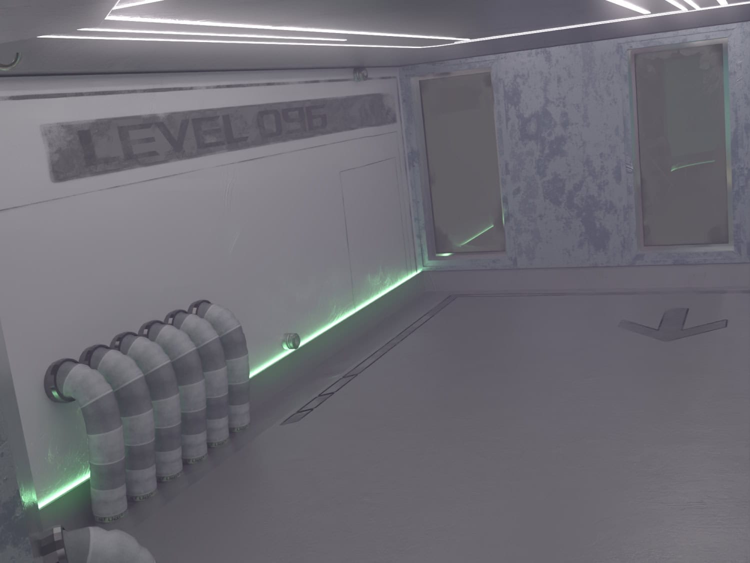A simple room with a lot of potential. The Obscura room features a heavy scifi feel, but can easily be customized to allows for creating unique kitbash layouts with your favorite assets – Nearly all of the features of the room from the central pillars to cables can be hidden from via geometry switches while the floor and wall graphics are their own separated props that can easily be hidden in the scene file list.