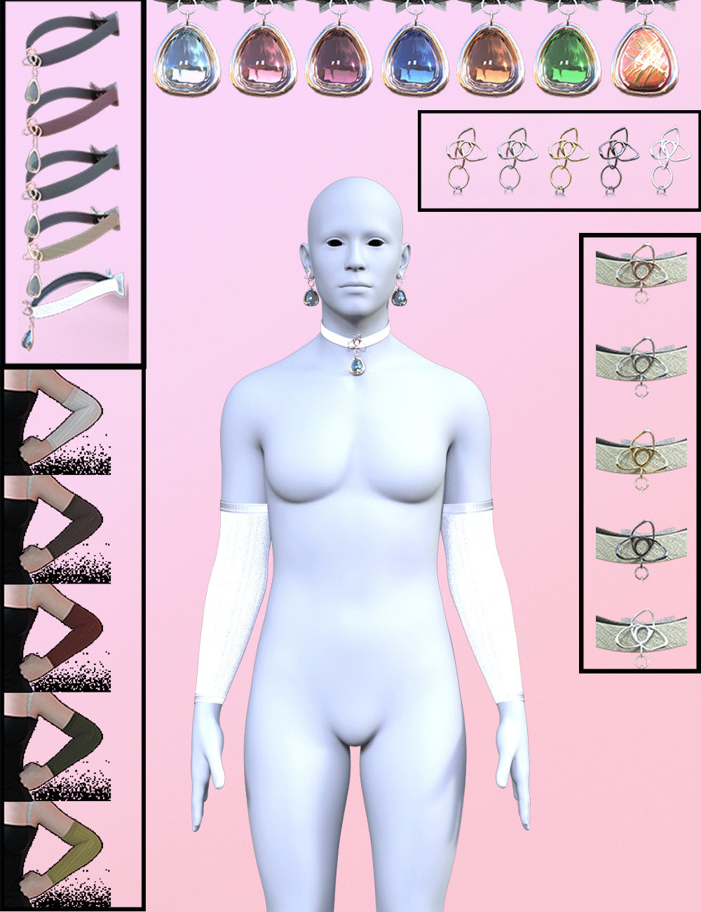 PD Atelier Drop is a sophisticated jewelry and accessory set designed to bring a touch of “casual luxury” to your characters. This versatile collection features a choker, earrings, and arm covers, making it the perfect choice for both elegant gala scenes and cute, casual portraits.