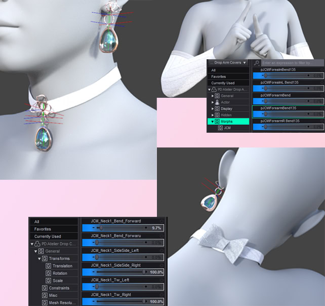 Smooth Fitting (JCMs): Includes built-in Joint Controlled Morphs (6 for the Choker, 1 for the Arm Covers) to ensure natural deformation and a perfect fit during movement.