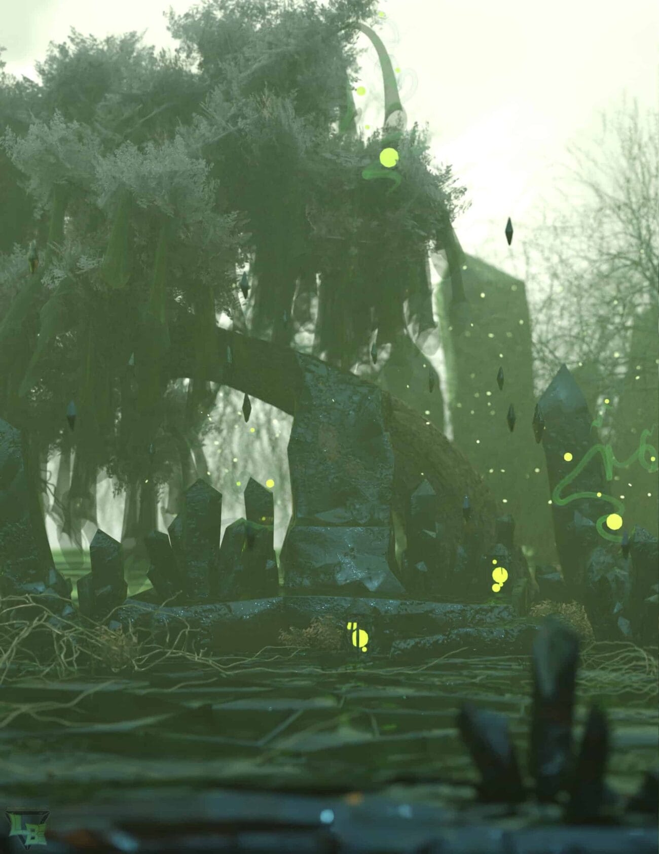 “Edge Bokeh” is a scattering of small, emission planes around the scene parameters to create a firefly effect in the trees. There is an emissions brightener in the individual mats for distance shots.