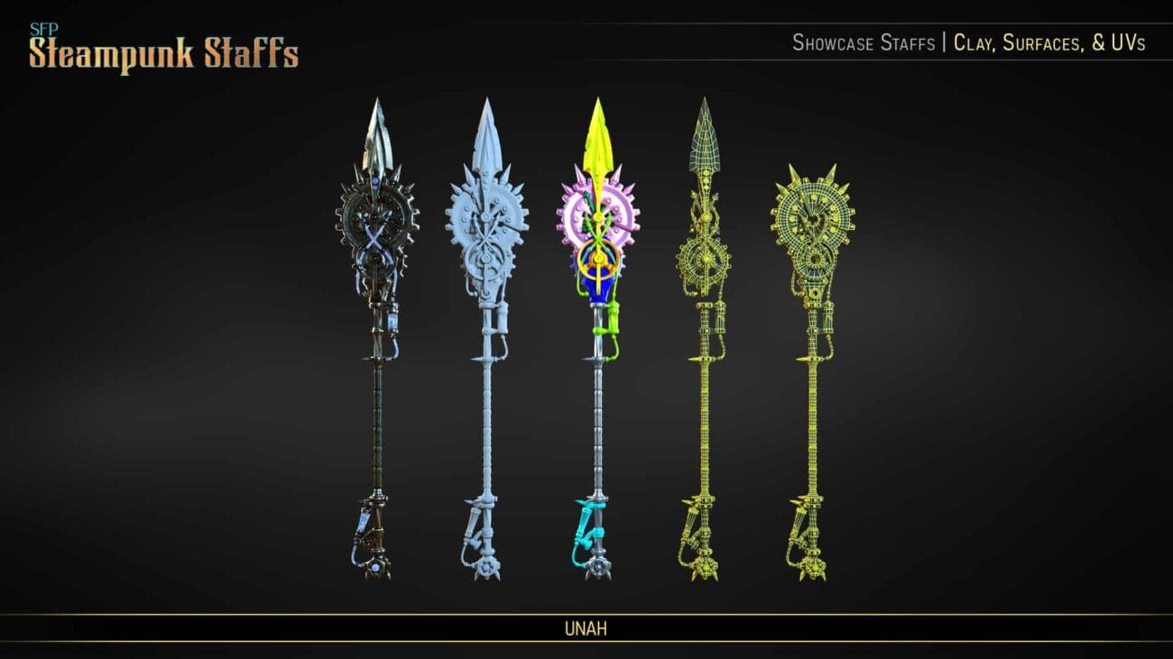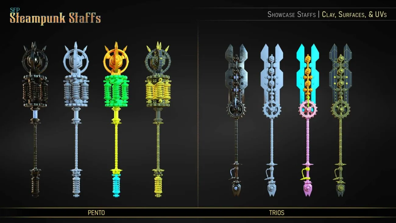 SFP Steampunk Staffs are extremely rare and highly sought after. That said, their origin and true purpose remain a mystery. Discovered by archeologists in an old temple, these staffs are a relic of a forgotten time and have the potential to make and break entire nations.