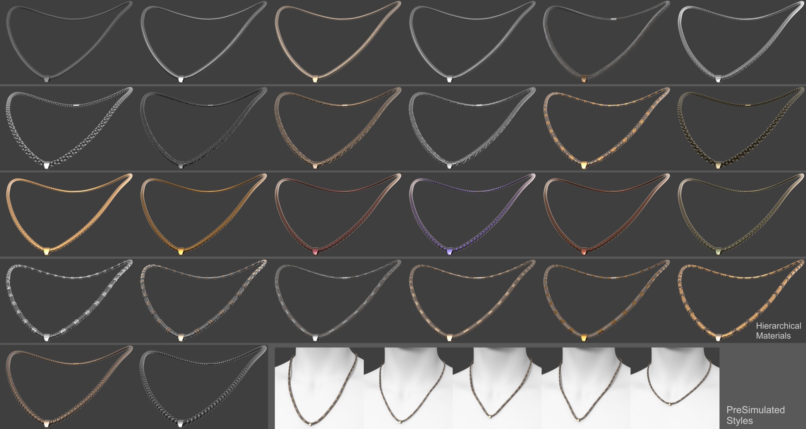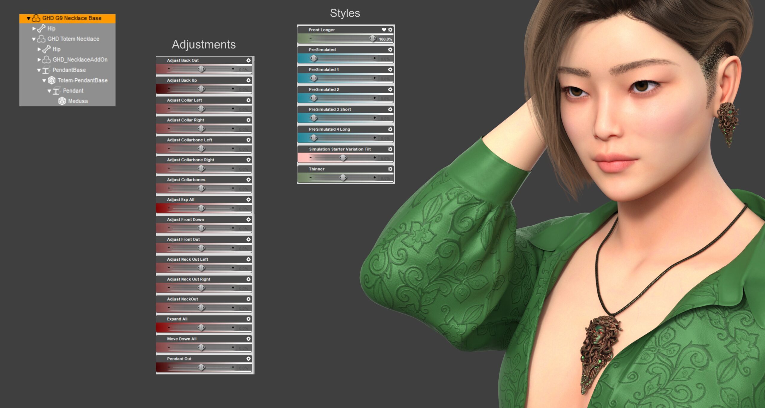 – Necklace with and without pendantbas. With several adjustments and styling, presimulated morphs.