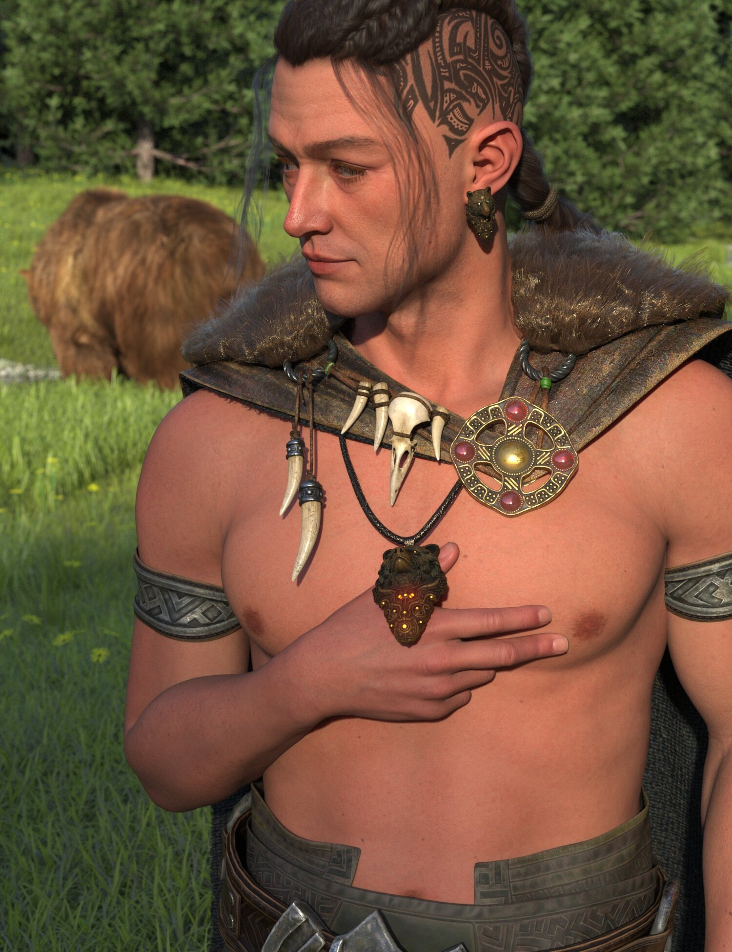 Elevate your Genesis 9 characters with the Totem Earrings and Pendant — a beautifully detailed jewelry set designed to bring personality and storytelling to any scene.