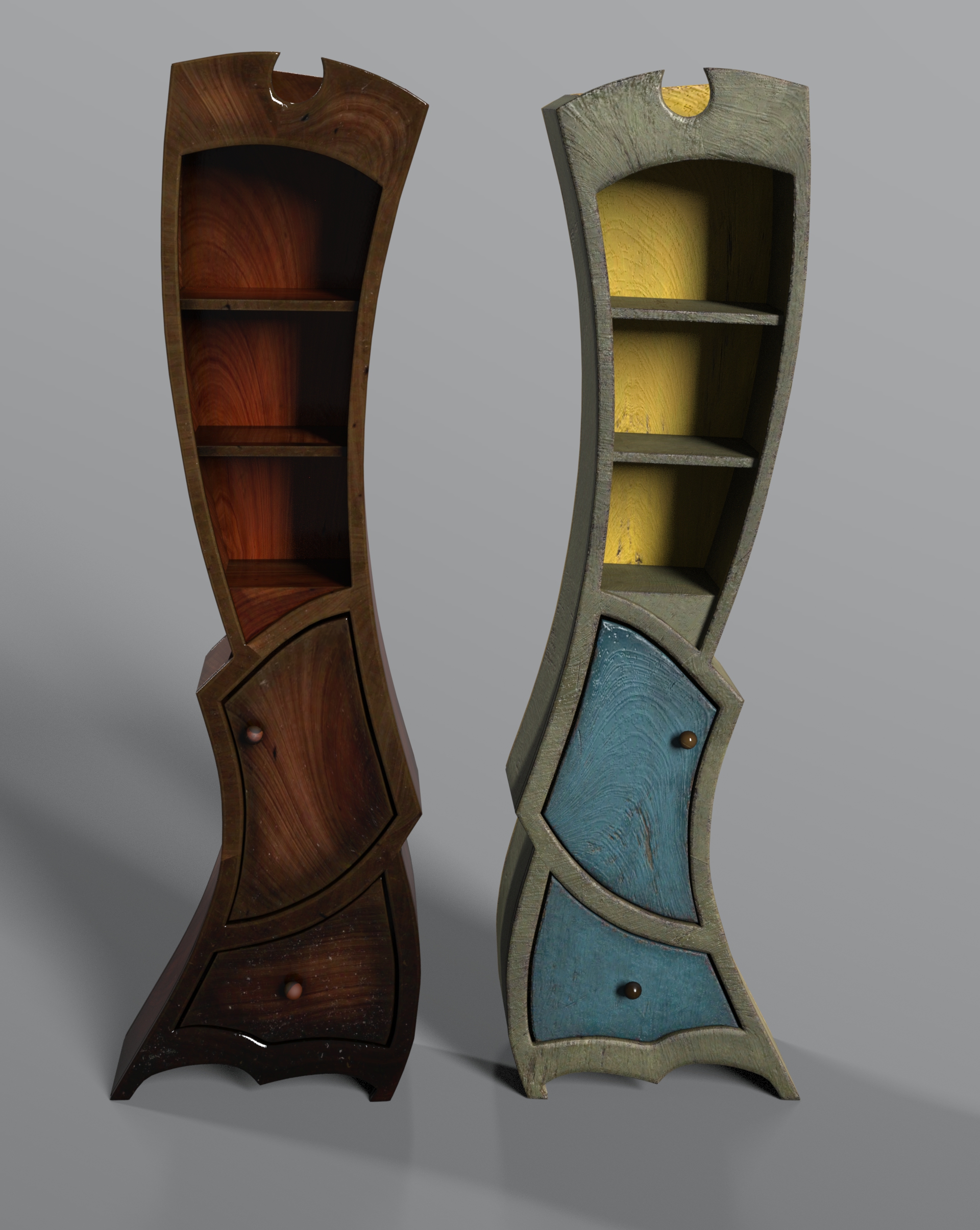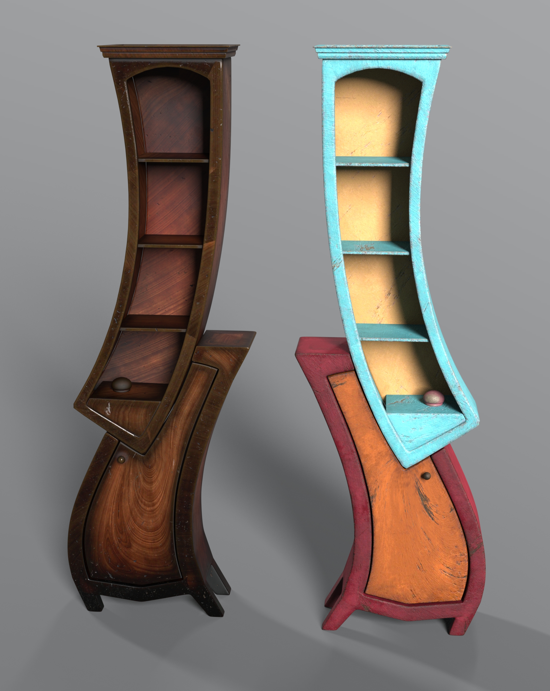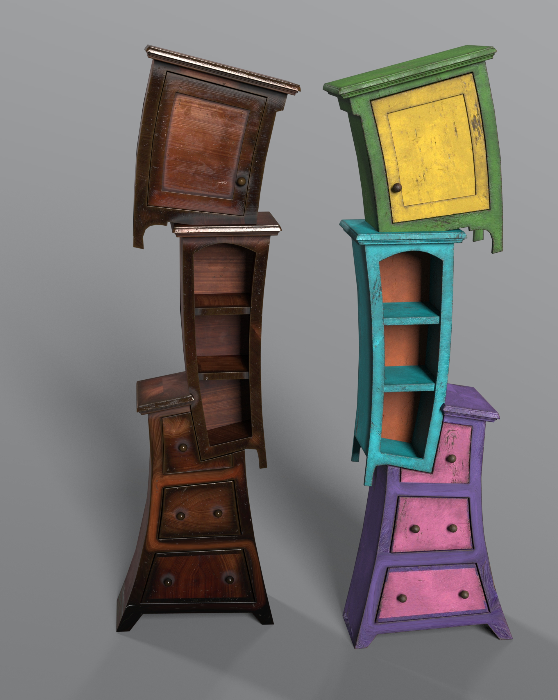 Twisted Furnitures is a stylized prop pack featuring six surreal, twisted furniture pieces plus mirrored versions and two universal material presets.