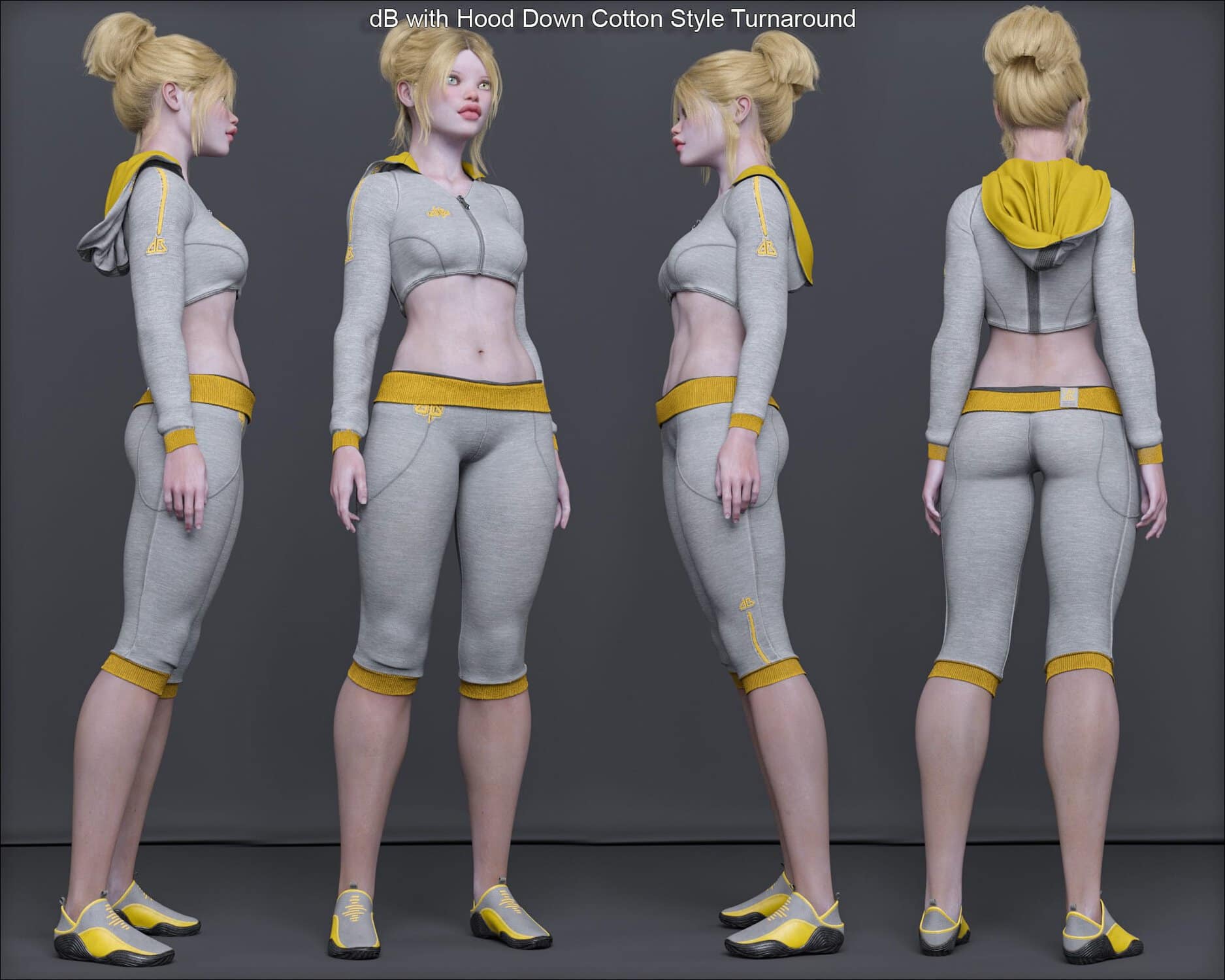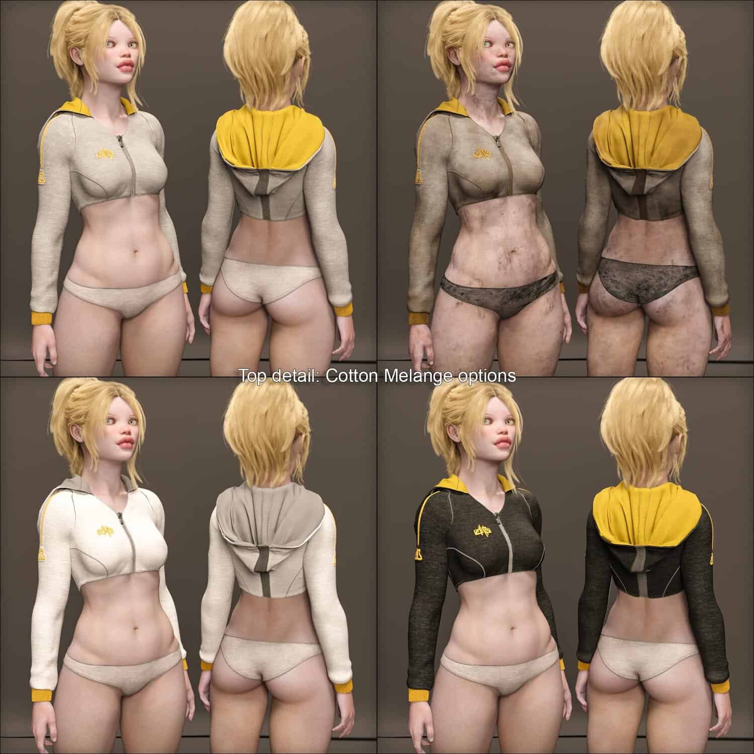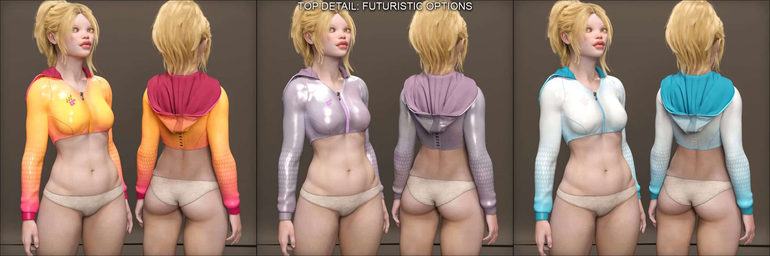 • Hood movement morphs and dForce sim helpers for the “dynamic” hoodie