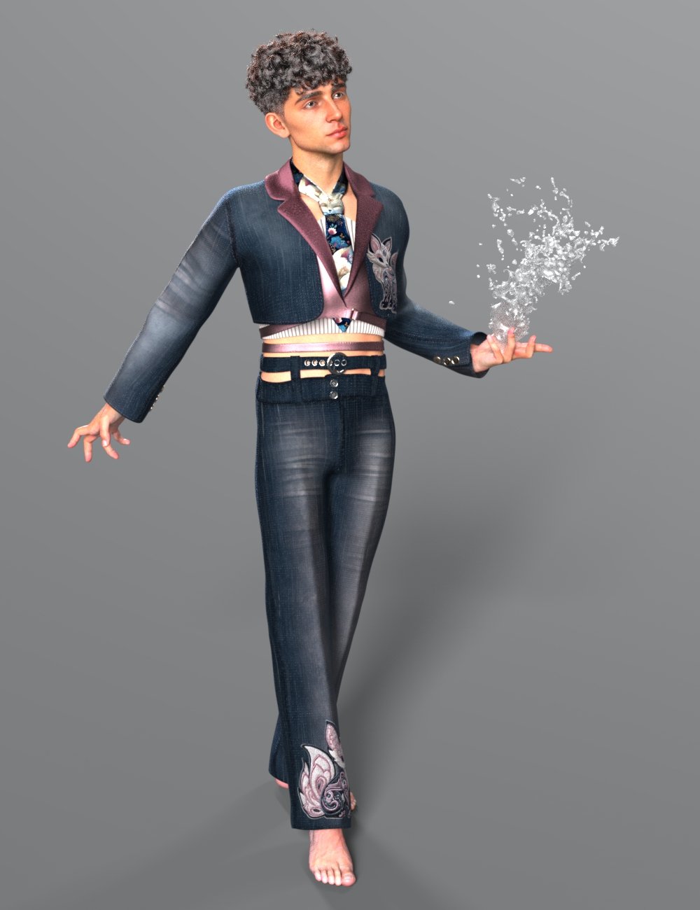 | AI Type: | Fox embroidery and texture tie on denim set, |