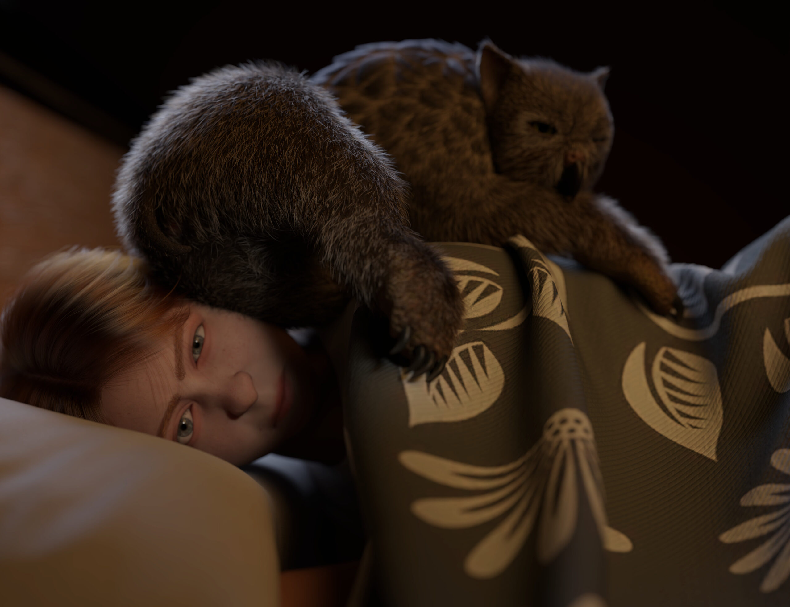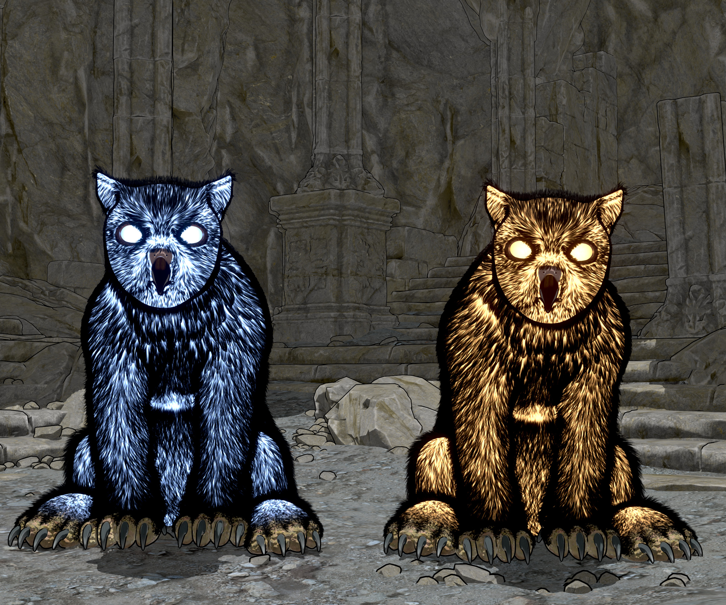 This product provides a shape, poses, and strand-based hair, turning the Daz Dog 8 into an intimidating Owlbear.