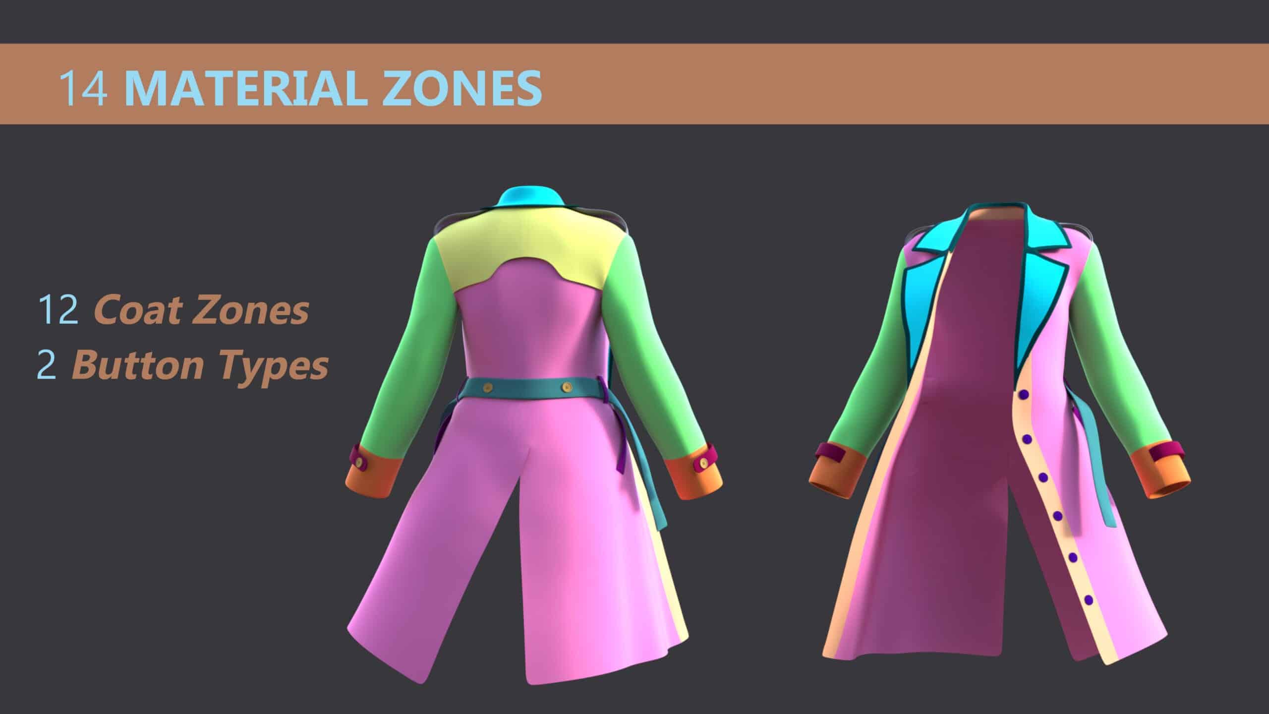 *The Button Set has been divided material-wise into Rivets (front of the coat) and Buttons (Cuffs, Back Waist, and Shoulder)*