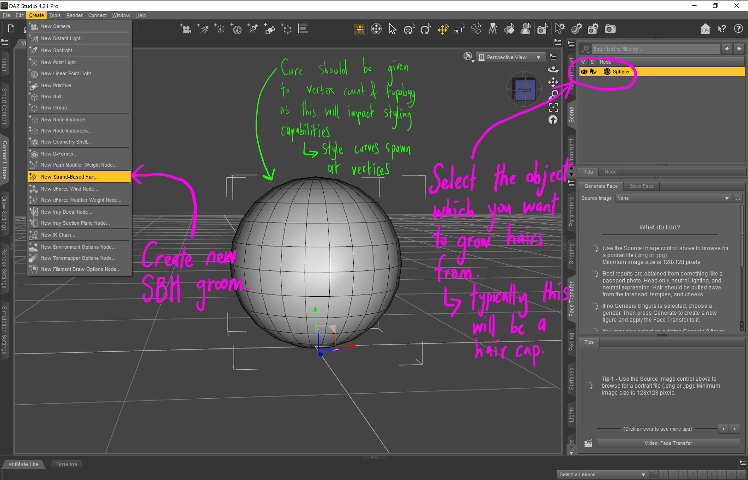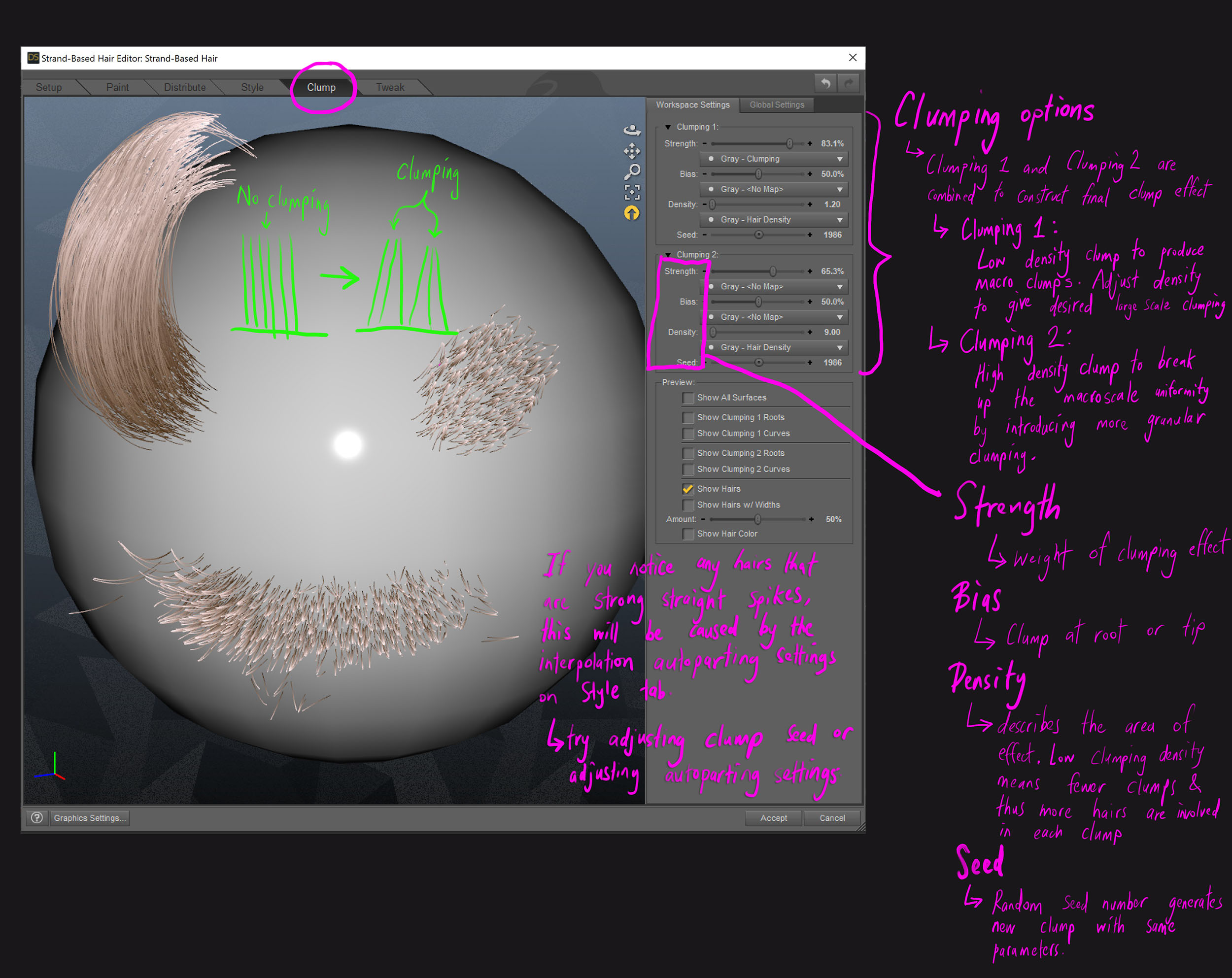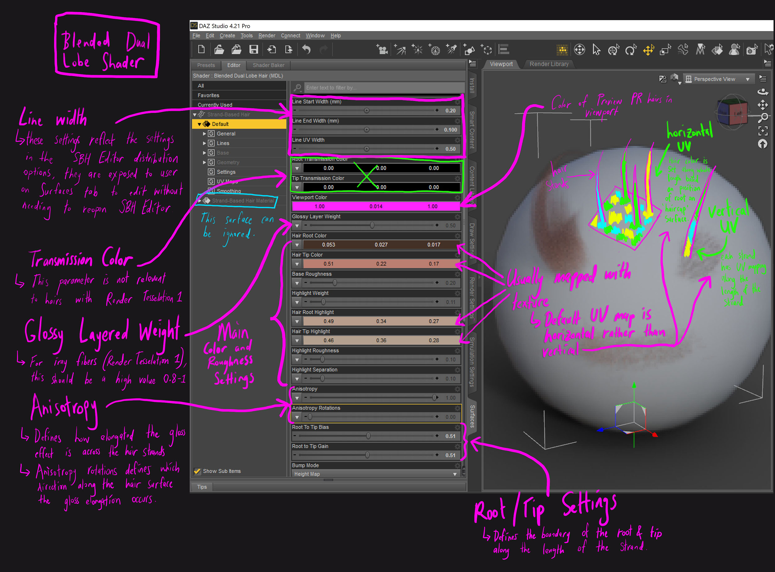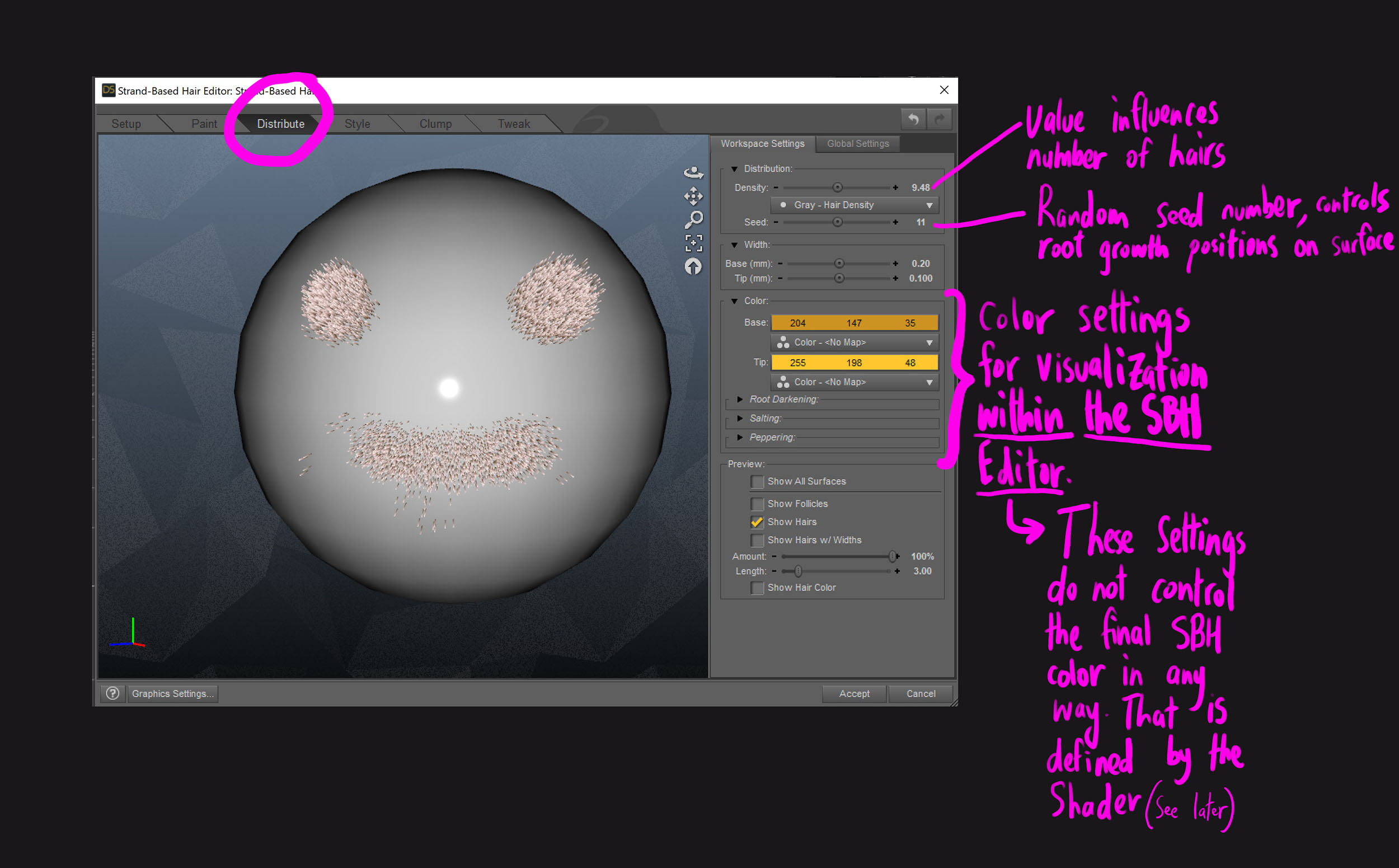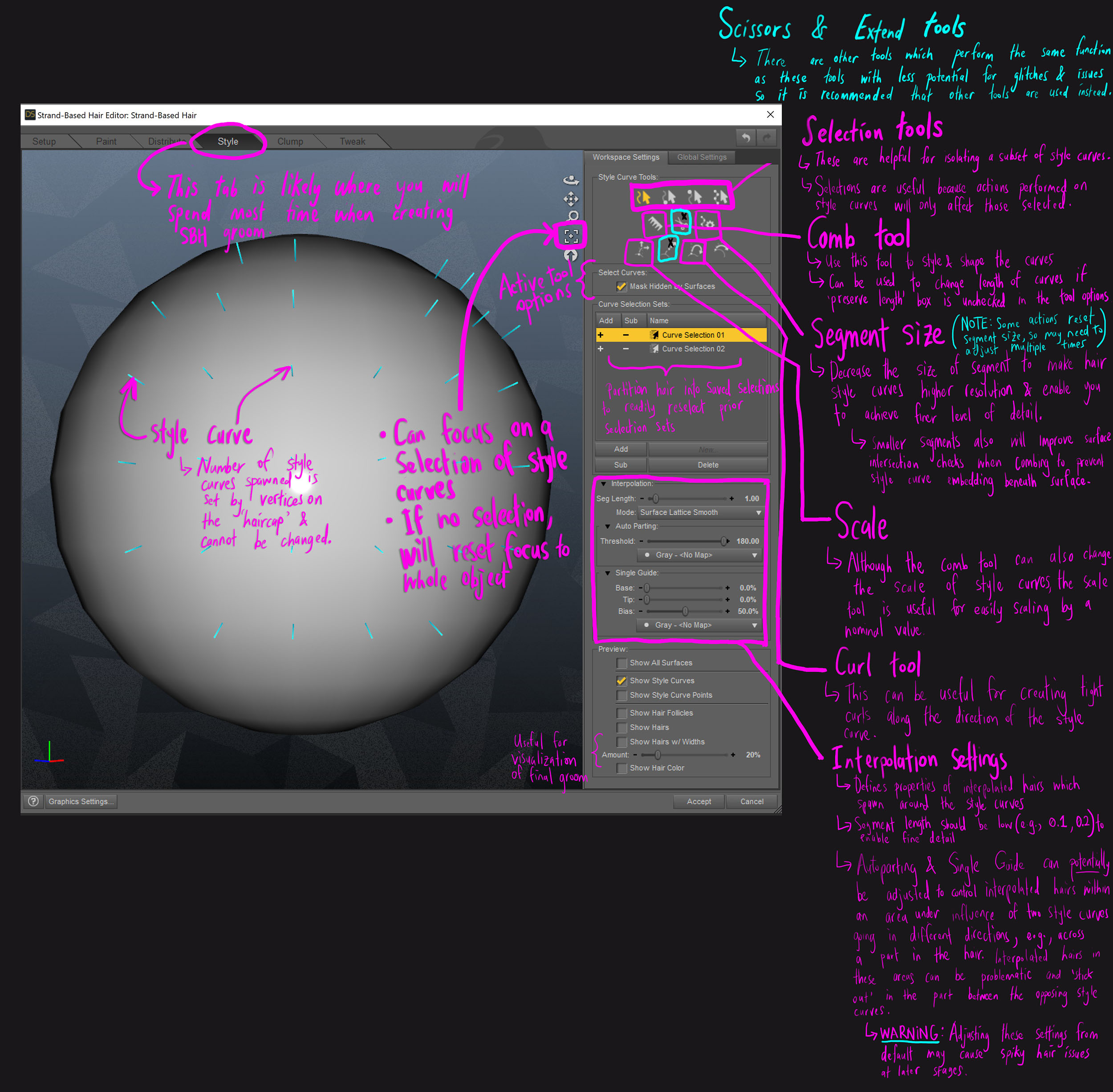 Presented here are some study notes on creating Strand Based Hair (SBH) using the SBH Editor in Daz Studio.